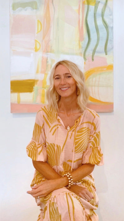 When it comes to art and design, I try to set the rules aside and push the boundaries. As a result, I have no guidelines to adhere to and no fences around my creativity. Although I relate most to Abstract Expressionism, I often call upon my early illustrative sketching days of a more whimsical nature. I am drawn to color but also need vast amounts of white space and I'm forever playing with the balance between the two. I find the most beauty in the simplest forms. My work has been described as a calm amidst chaos and I would happily agree with that. I'm coastal + southern and I always find inspiration back home. Even after experiencing various cultures abroad and living across the pond, I am forever haunted by the Gulf Coastal South. I was raised in Alabama, educated in Texas and currently reside in Florida. The culture and soul in the South feeds the imagination like nowhere else for me. Geography, water and wide open horizons make their way into my work time and time again. I attended Baylor University where I graduated with a Bachelor of Arts degree and followed it up with a second degree from the University of Texas in Arlington. I began painting over 25 years ago and have enjoyed every step of the growth process along the way. Working out of both the 30A area along the Florida Gulf Coast and down south in Palm Beach County is an absolute dream and an endless source of inspiration. You’ll almost always find me somewhere in Florida... roaming through the Florida Keys, painting in my studio/gallery in Grayton Beach or somewhere in between with my husband, Keith, two boys, Wyatt and Wells, and a Labrador Retriever named Blue.