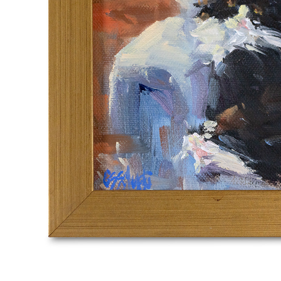 oil on linen canvas, framed in gold floater frame