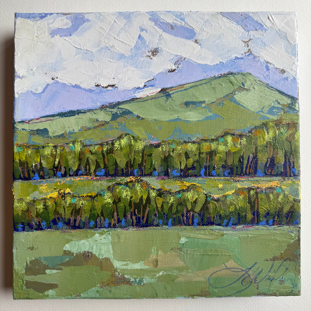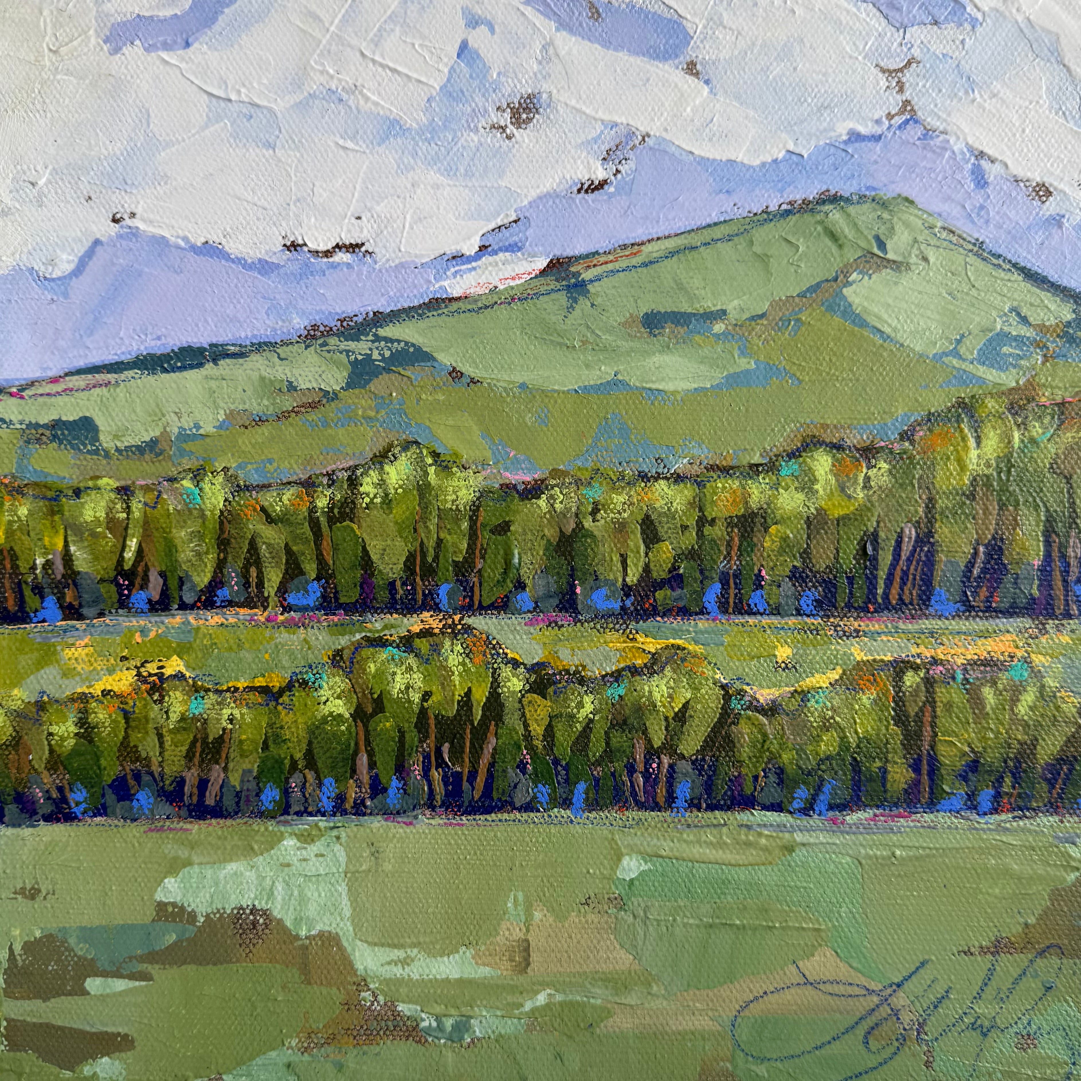 Lindsey’s paintings are an escape and journey - a time to relish the process of creativity: the brush strokes, the layers, the juxtaposition of colors. She works primarily with acrylic paints for their intensity of color and the ability to layer and create textures with various acrylic mediums and gels. A native of Lynchburg, Virginia, Lindsey’s landscapes generally focus on special places that she has known all her life, including fields at the foot of the Blue Ridge Mountains and the pristine beauty of the Cowpasture River. Working from onsite sketches and photographs, she mixes observations with her own personal memories and feelings of how she perceives a place. In addition to being an artist, Lindsey is a full-time art educator, wife, and mother of two young children.