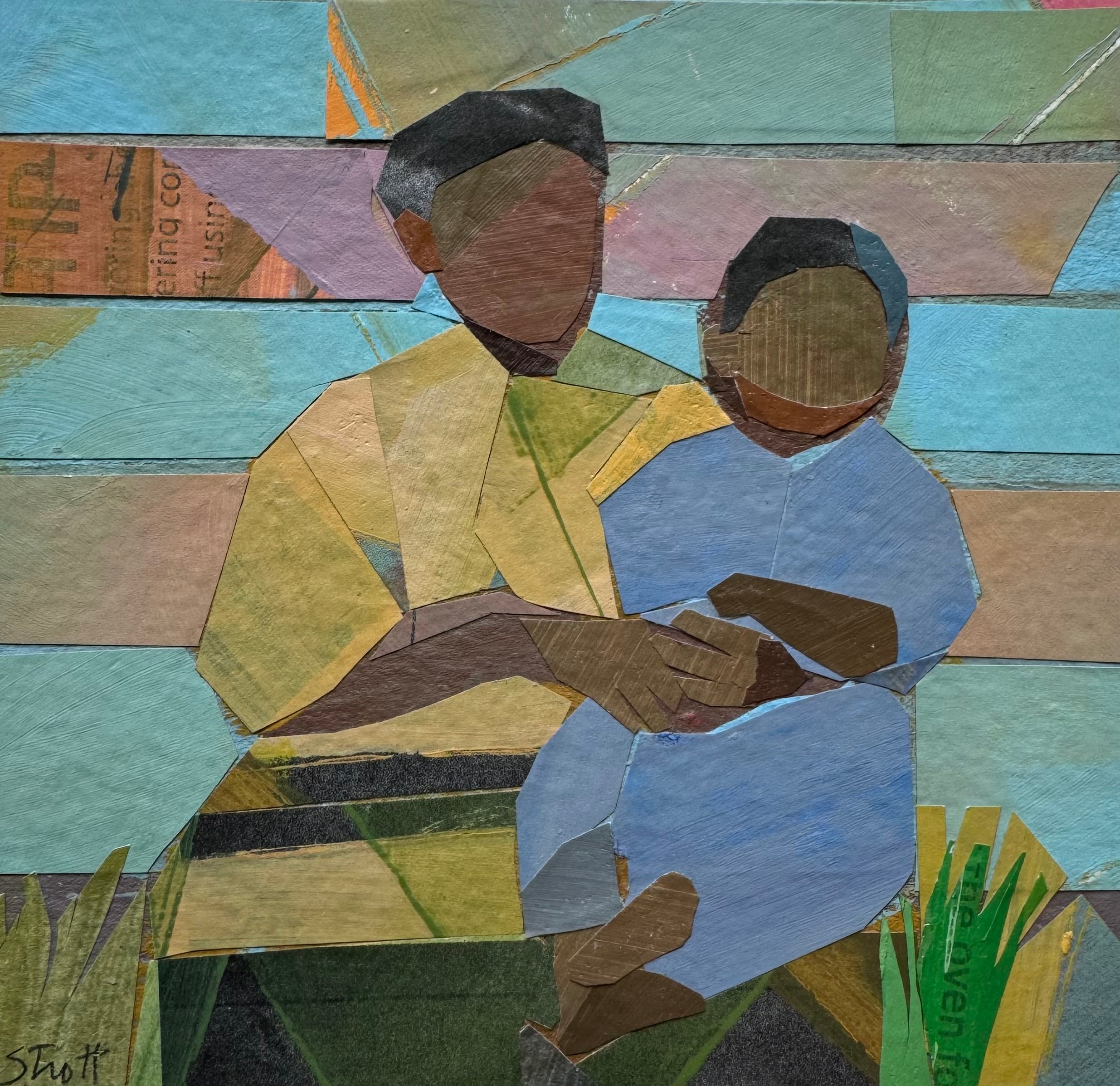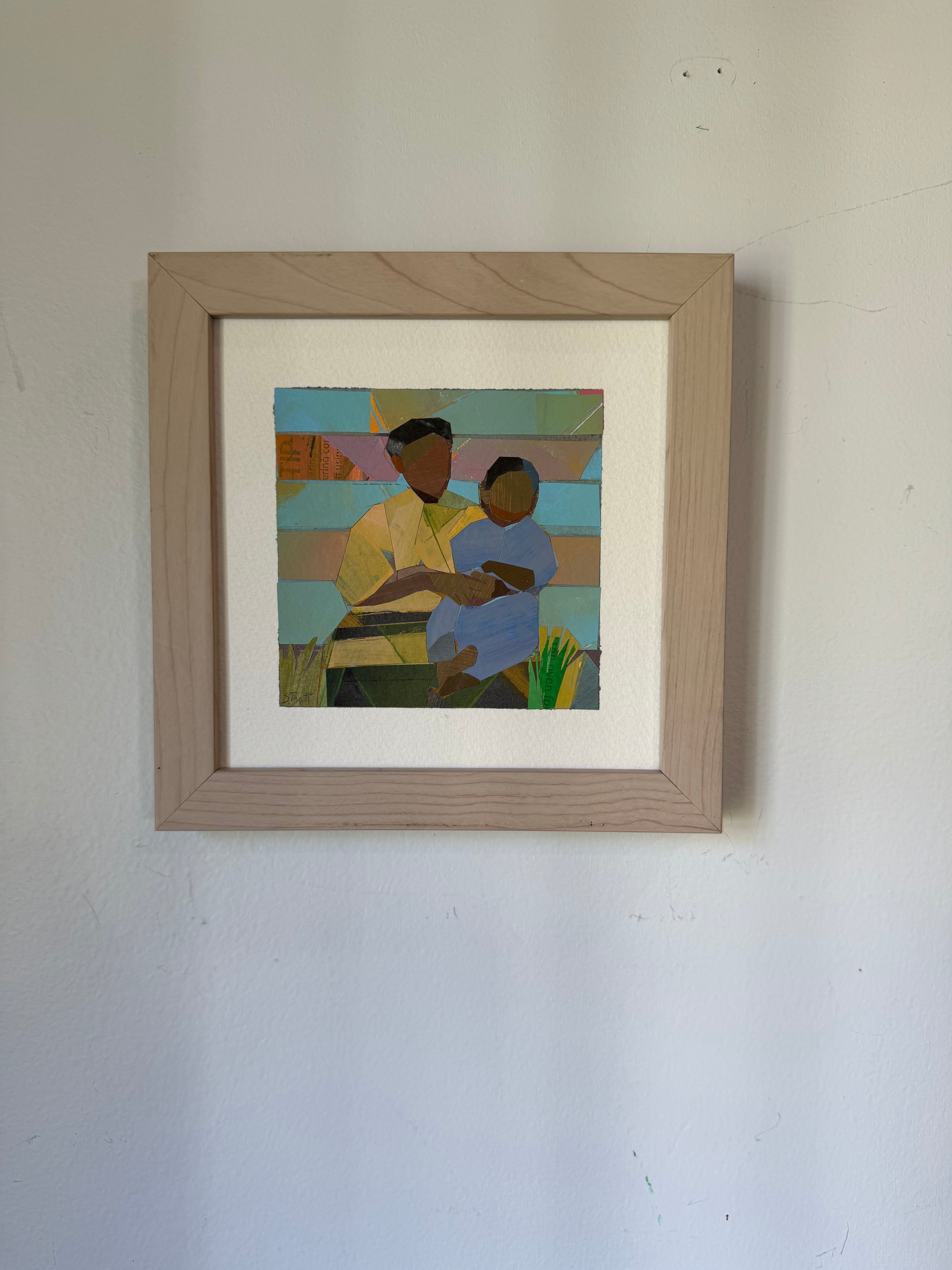 paper collage, in wood frame