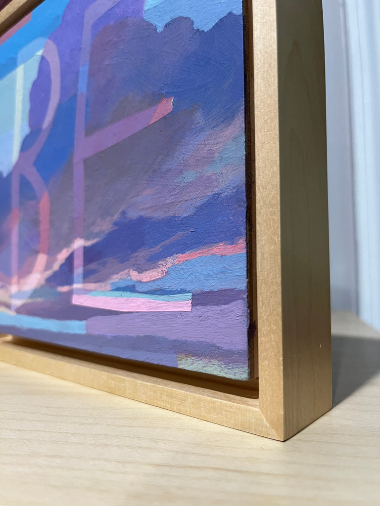 acrylic on panel, framed in natural wood floater frame