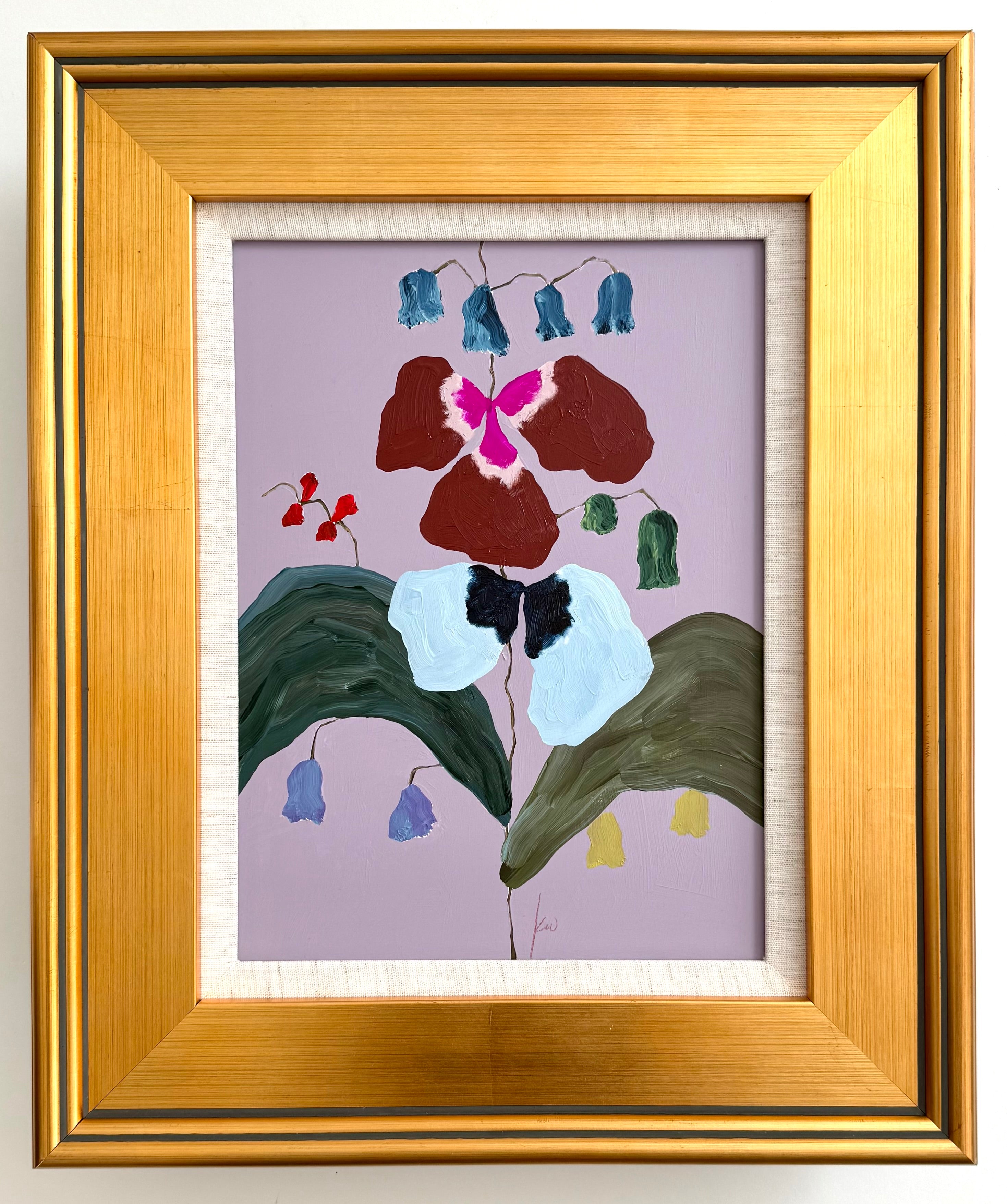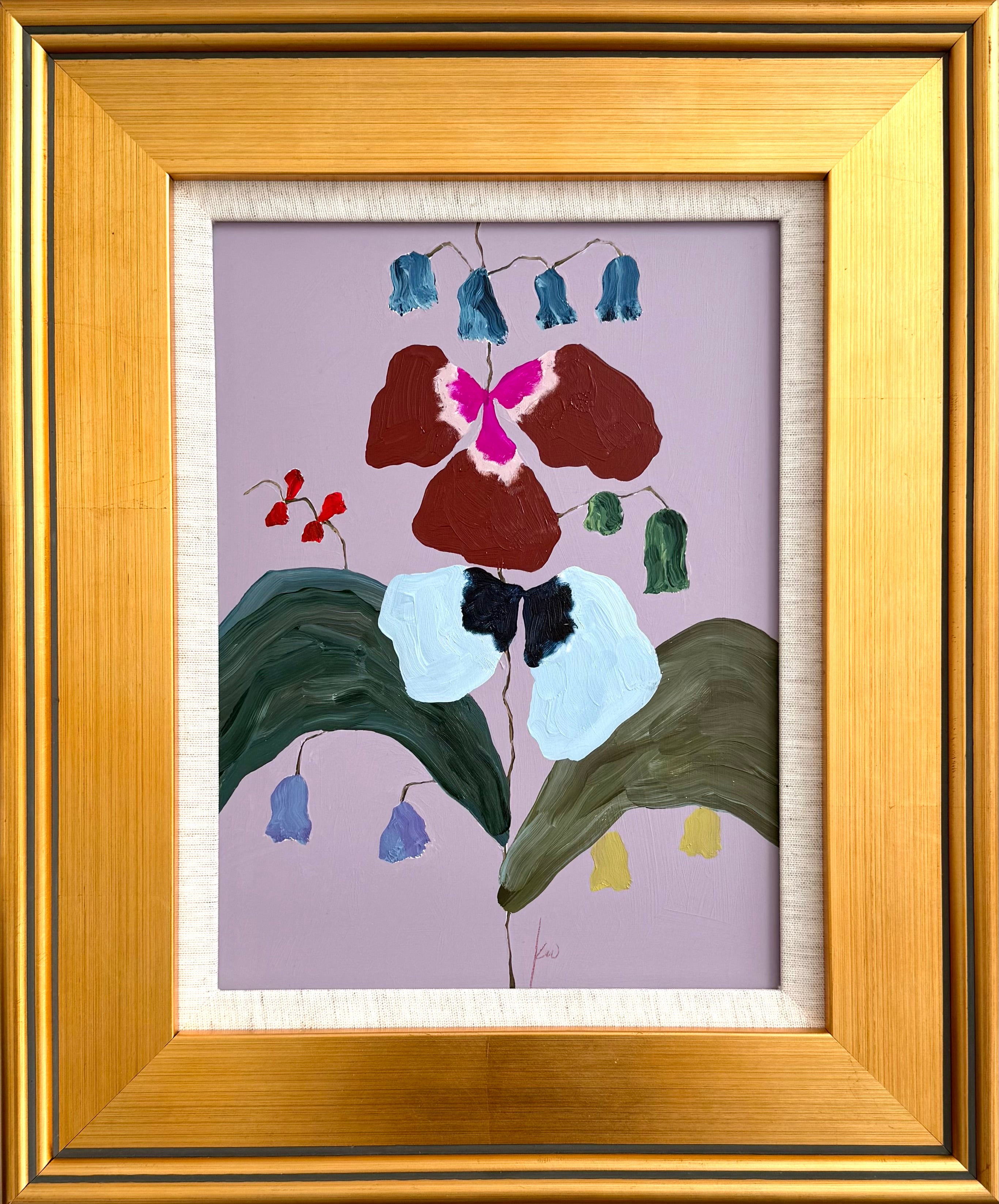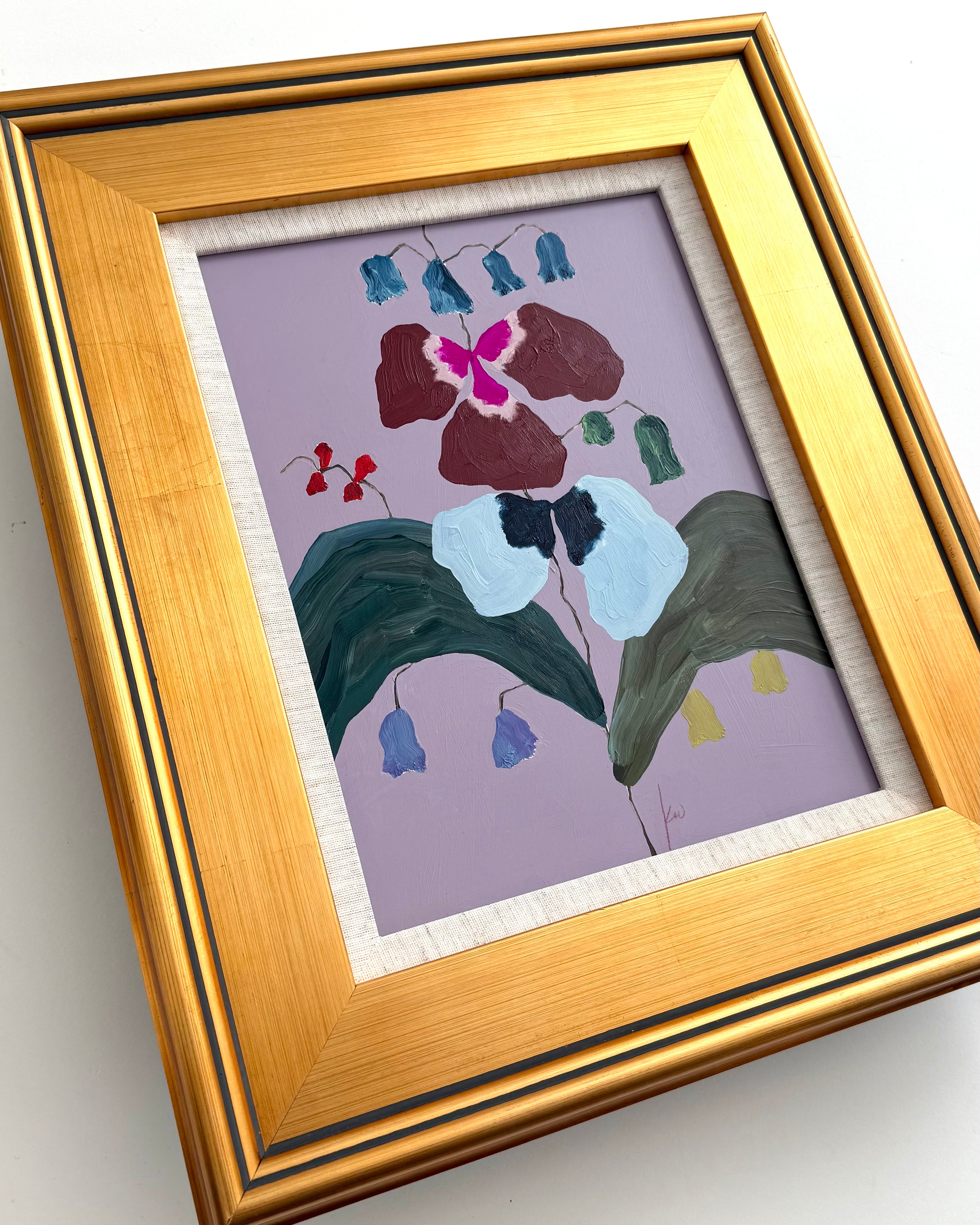 acrylic on wood panel, in gold frame with linen mat