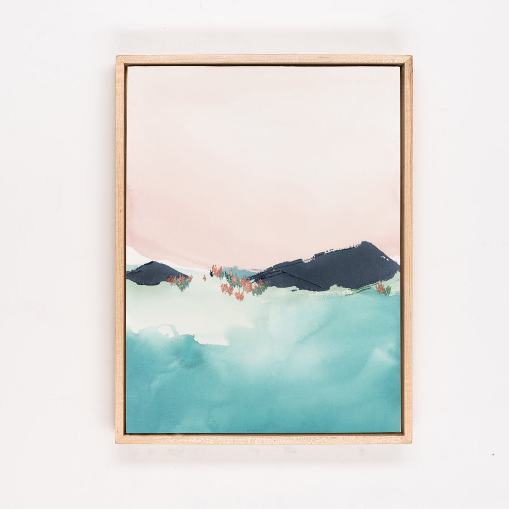 mixed media on wood panel, in maple frame