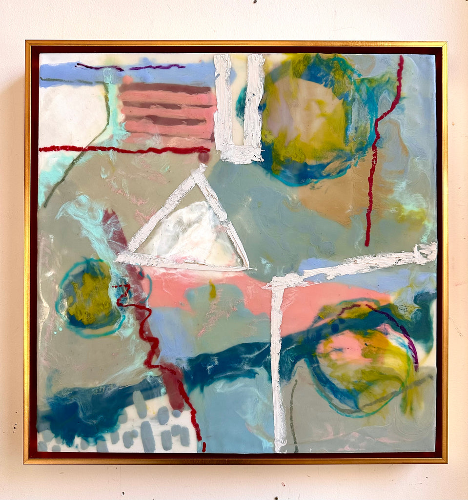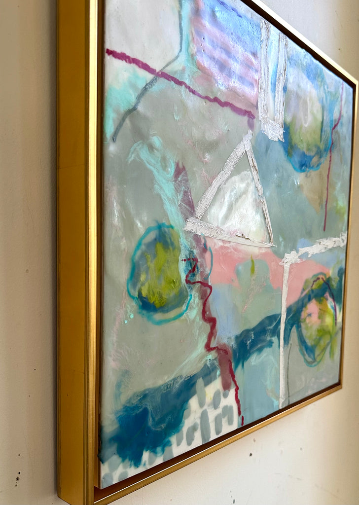 encaustic on wood in gold floating frame
