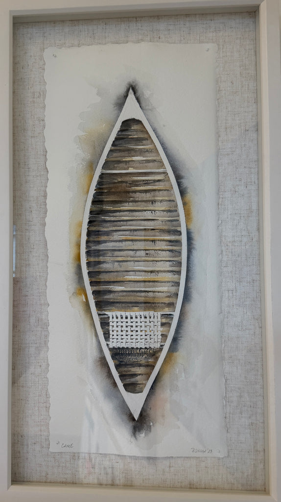 watercolor on paper, on fabric mat and wood frame