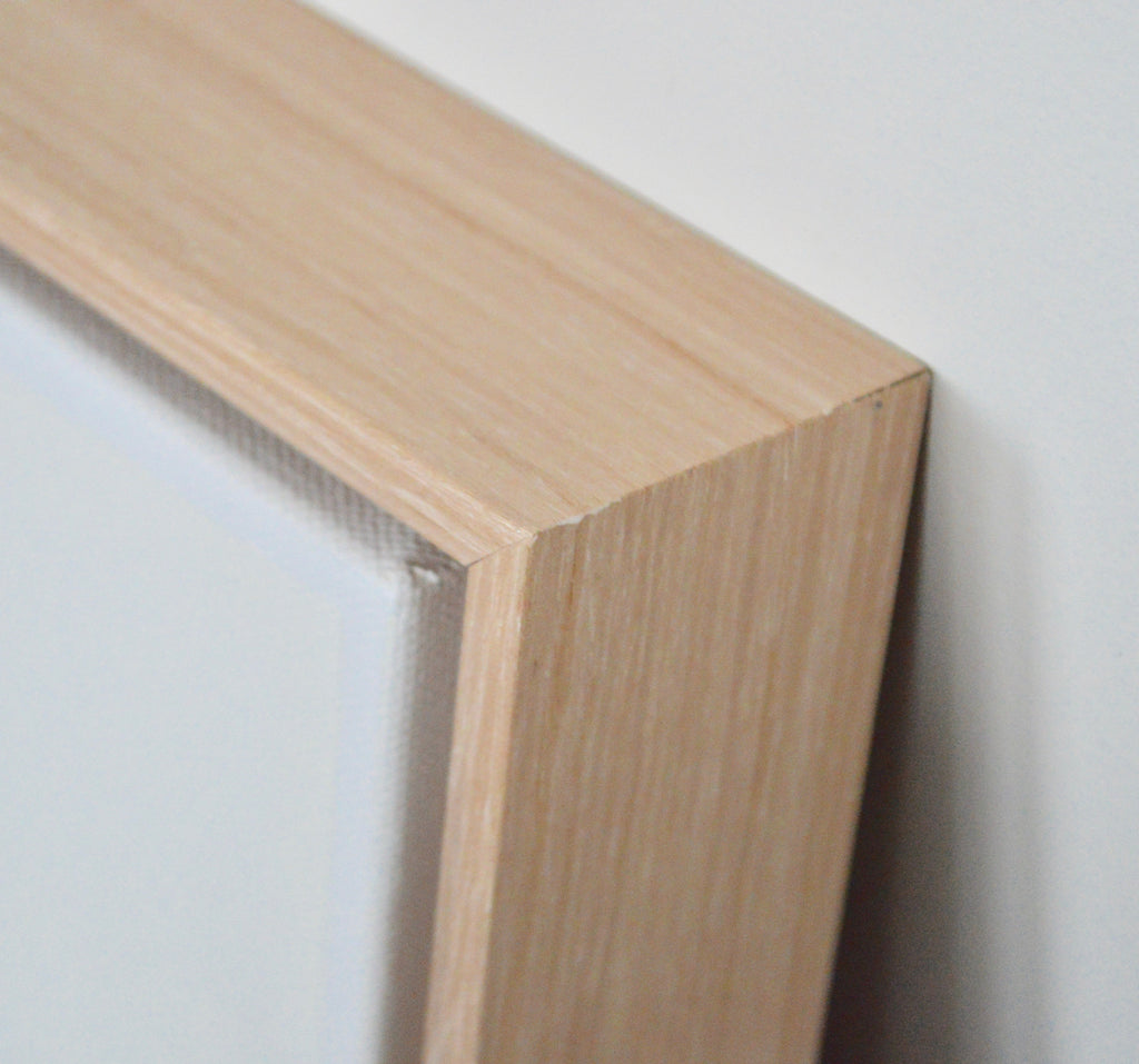 acrylic on gallery wrapped canvas, in pale wood floater frame