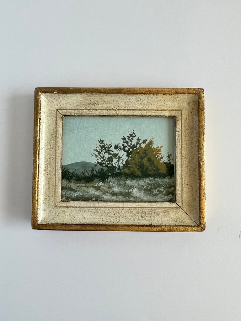 Jennifer was born in Jackson MS and moved to Nashville as a child. She enjoyed art as a child and painted with oils a bit as a teen, but ultimately went to MTSU to earn a degree in nutrition. Jennifer didn’t truly begin painting again until her children were in school full time, and started simply by painting pieces she wanted to hang in her own home. Discovering a love for vintage and antique frames (not to mention looking for these frames both in-person and online), she began pairing them with her favorite paintings. She paints primarily in acrylics on handmade paper. “I love the juxtaposition of a vintage/antique frame with the freshness of a modern landscape on textured handmade paper; the marriage of that tradition and history combined with the fresh clean colors in my pieces brings me joy.” She finds inspiration in clouds and trees and the hunt for the perfect vintage frame. Jennifer lives in Nashville with her husband and two boys.