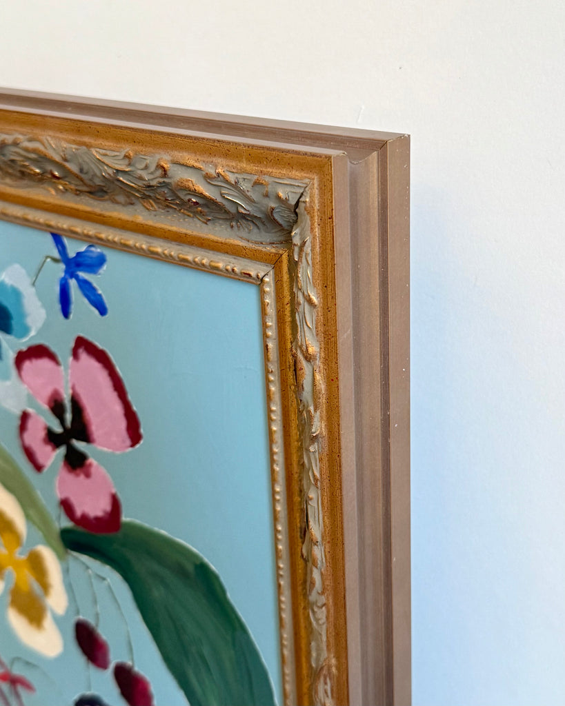 acrylic on wood panel, in vintage inspired gold frame