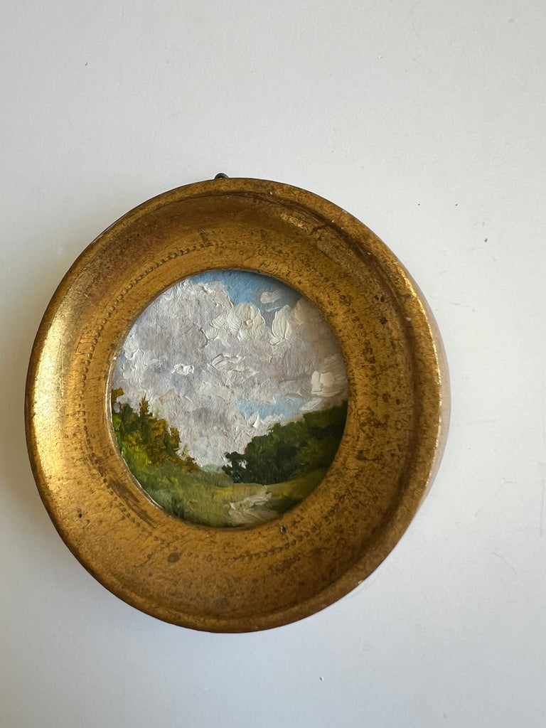 Jennifer was born in Jackson MS and moved to Nashville as a child. She enjoyed art as a child and painted with oils a bit as a teen, but ultimately went to MTSU to earn a degree in nutrition. Jennifer didn’t truly begin painting again until her children were in school full time, and started simply by painting pieces she wanted to hang in her own home. Discovering a love for vintage and antique frames (not to mention looking for these frames both in-person and online), she began pairing them with her favorite paintings. She paints primarily in acrylics on handmade paper. “I love the juxtaposition of a vintage/antique frame with the freshness of a modern landscape on textured handmade paper; the marriage of that tradition and history combined with the fresh clean colors in my pieces brings me joy.” She finds inspiration in clouds and trees and the hunt for the perfect vintage frame. Jennifer lives in Nashville with her husband and two boys.