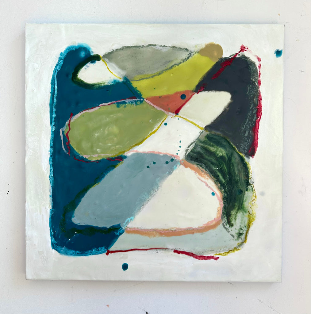 encaustic on wood in gold floating frame