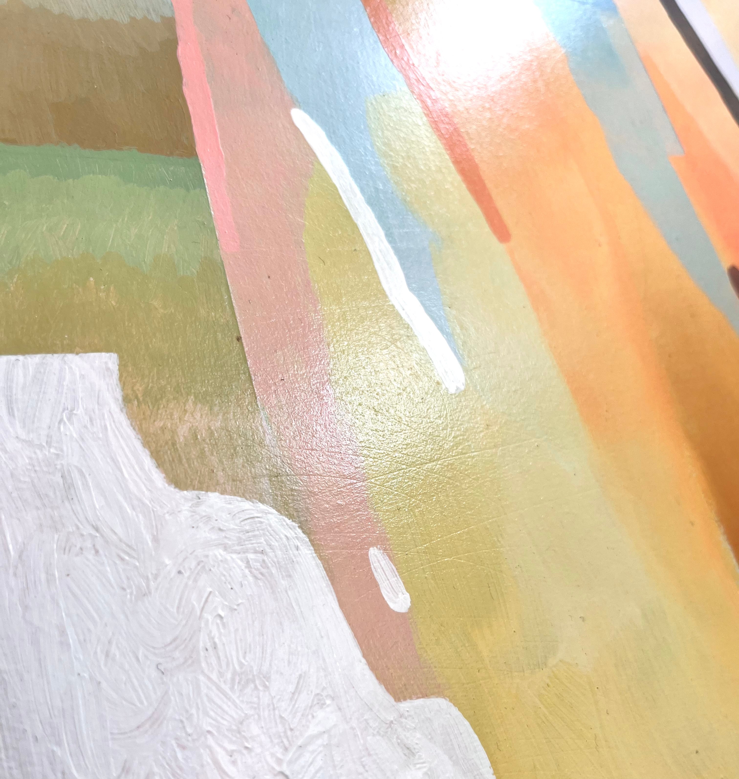 acrylic on canvas, framed in natural wood floater