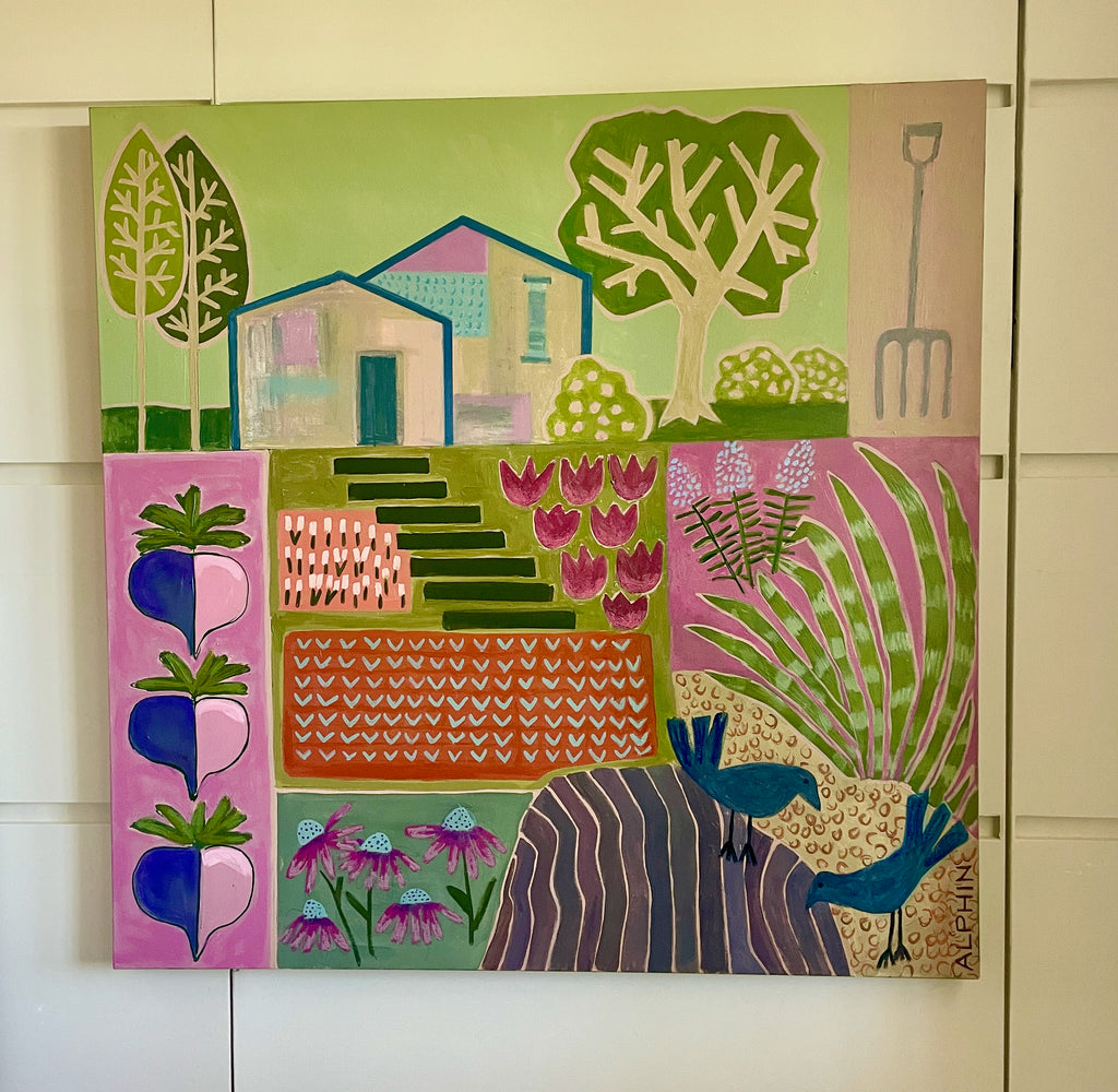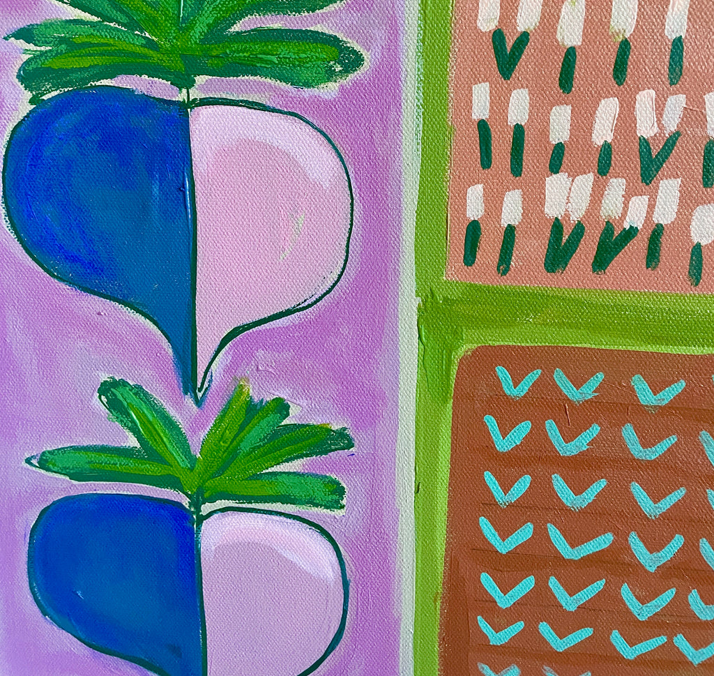 acrylic and oil pastel on gallery wrapped canvas