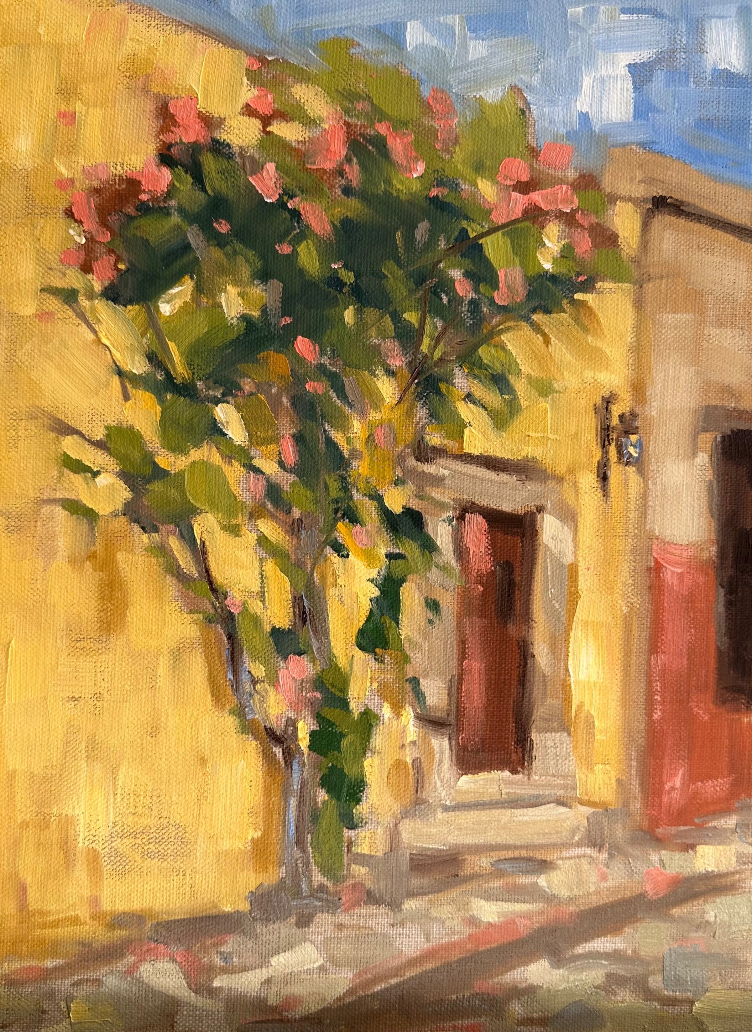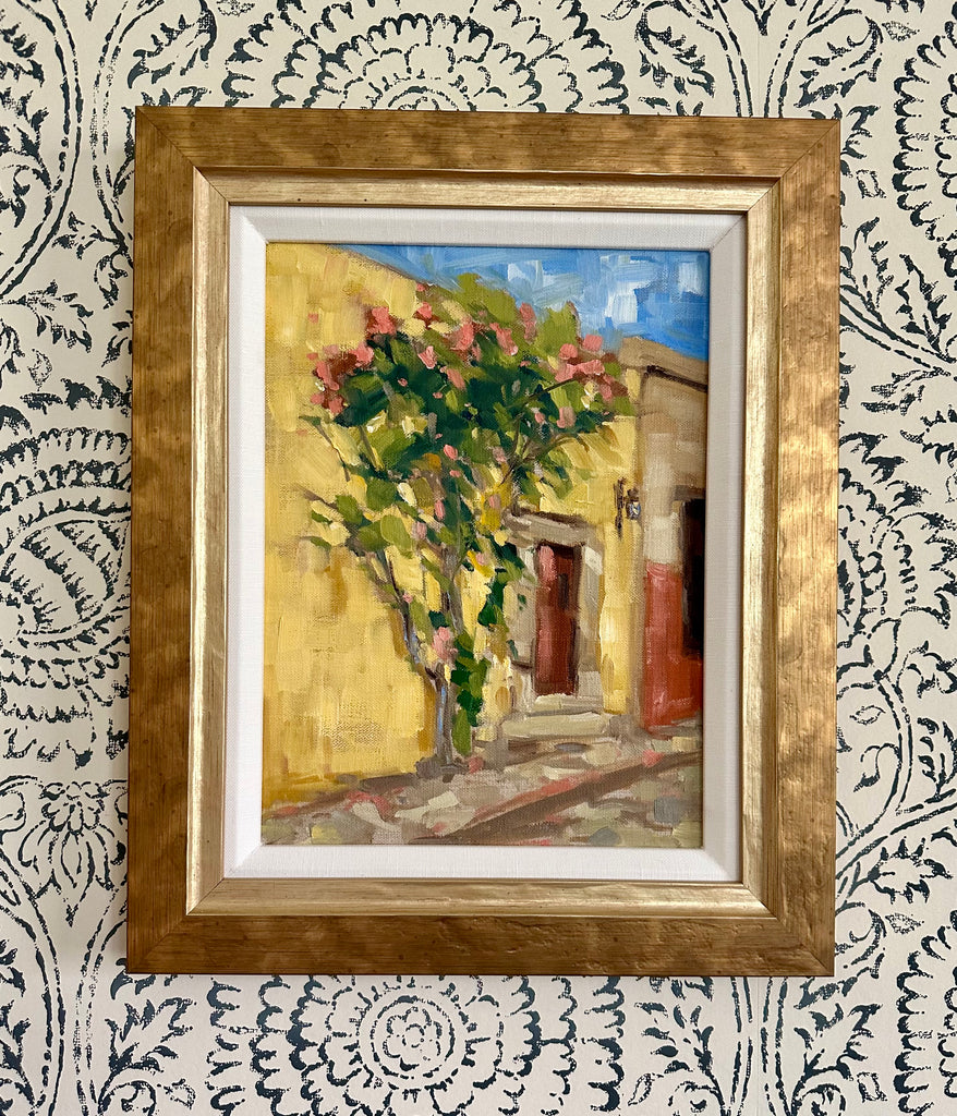 oil on linen board, framed in gold frame with linen mat