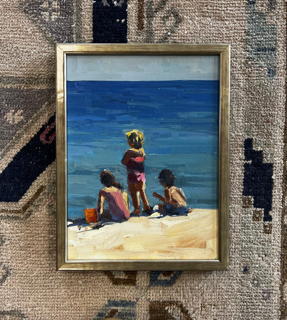 oil on canvas panel, framed in champagne and black frame