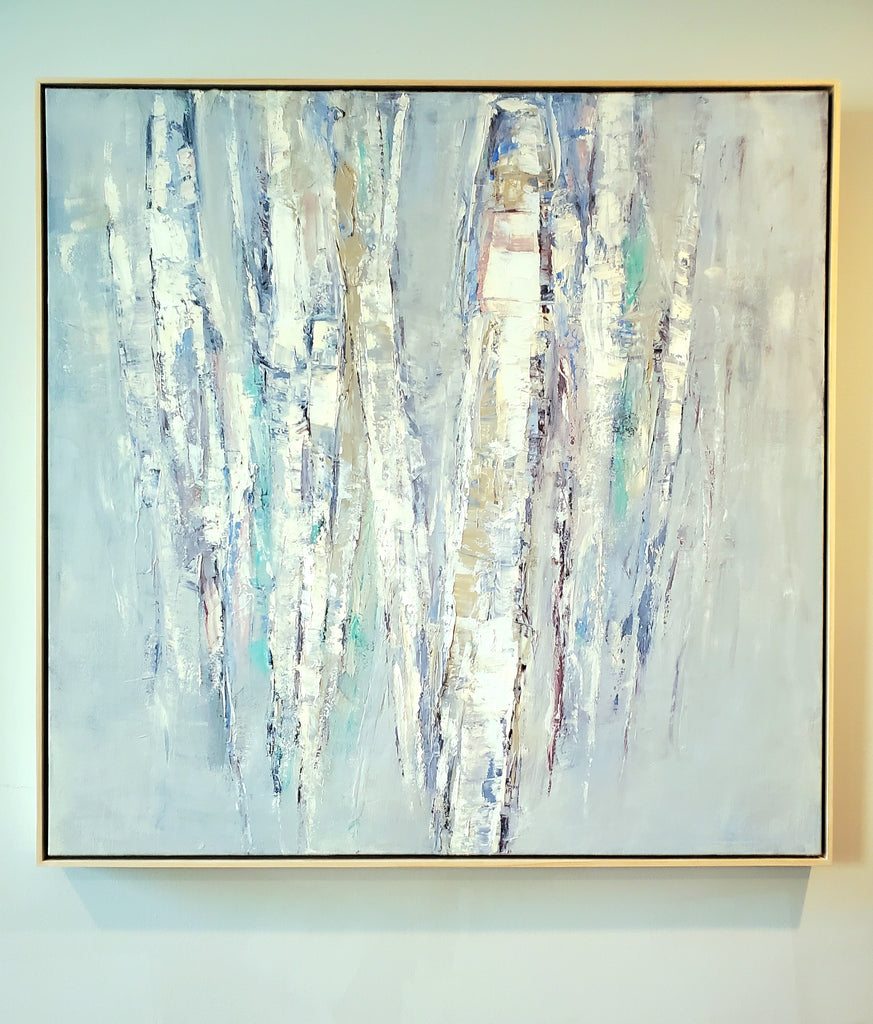 oil on canvas, framed in natural wood floater frame