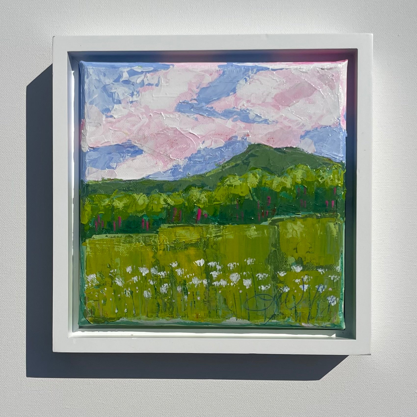 acrylic on gallery wrapped canvas, in white floater frame