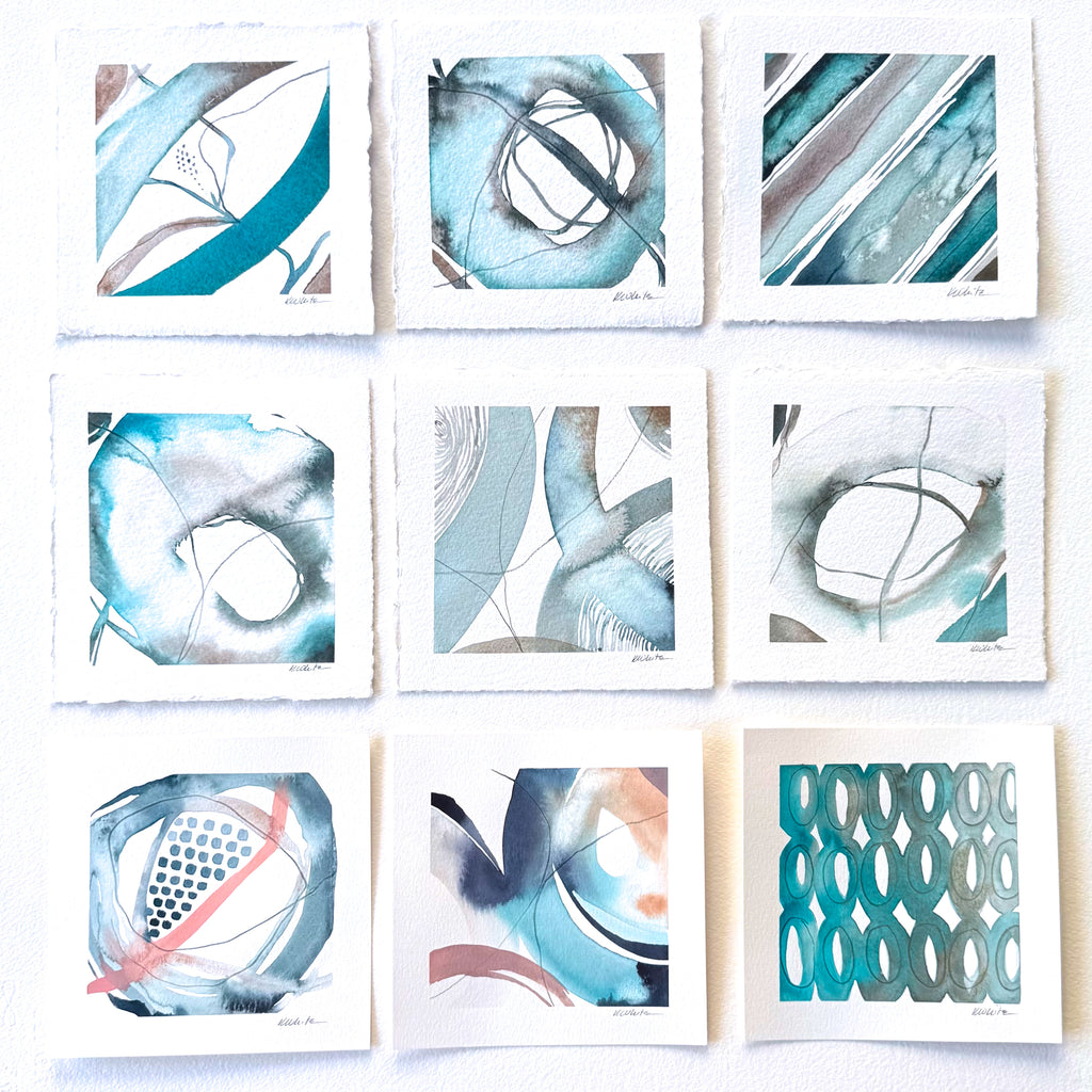 My art is heavily inspired by nature. Each creation takes on its own life, much like nature does when it unfolds. Many of my pieces greet you with a soft, serene atmosphere evoking a peaceful emotion, while others pull you in with the bold colors, telling their own story. I am drawn to the horizon line, the space where land or water meet the sky, a quiet pause at the end of the day as the sun sets, a deep exhale, or a place to root yourself to the earth. It reminds me of how important it is to stay grounded in the world we live in today.​ I received my BFA in Illustration from Washington University in St. Louis. I taught elementary art for many years and have been a professional artist for the past 5 years. In addition to my studio practice, I lead watercolor workshops and retreats. This work allows me to connect with women, teaching them how to use the medium as a tool to ease anxiety. My painting practice is what grounds me daily. I love sharing with others how to set intentions and being mindful with their own creativity.