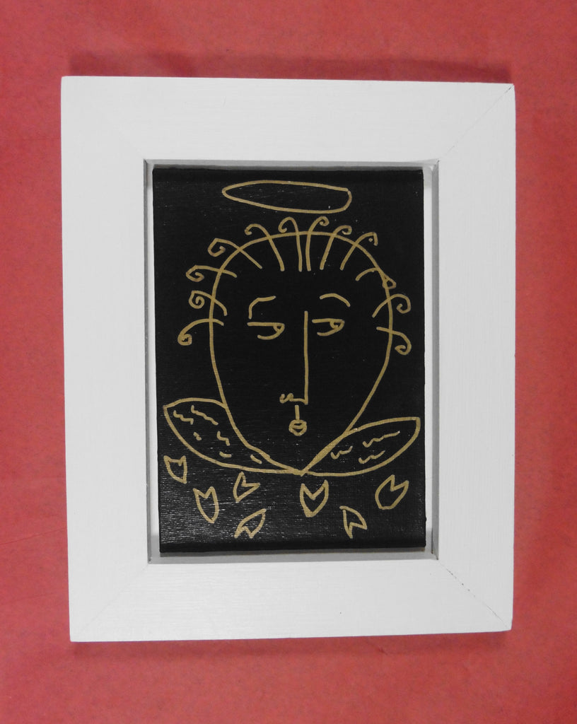 acrylic on canvas panel, in white wood frame