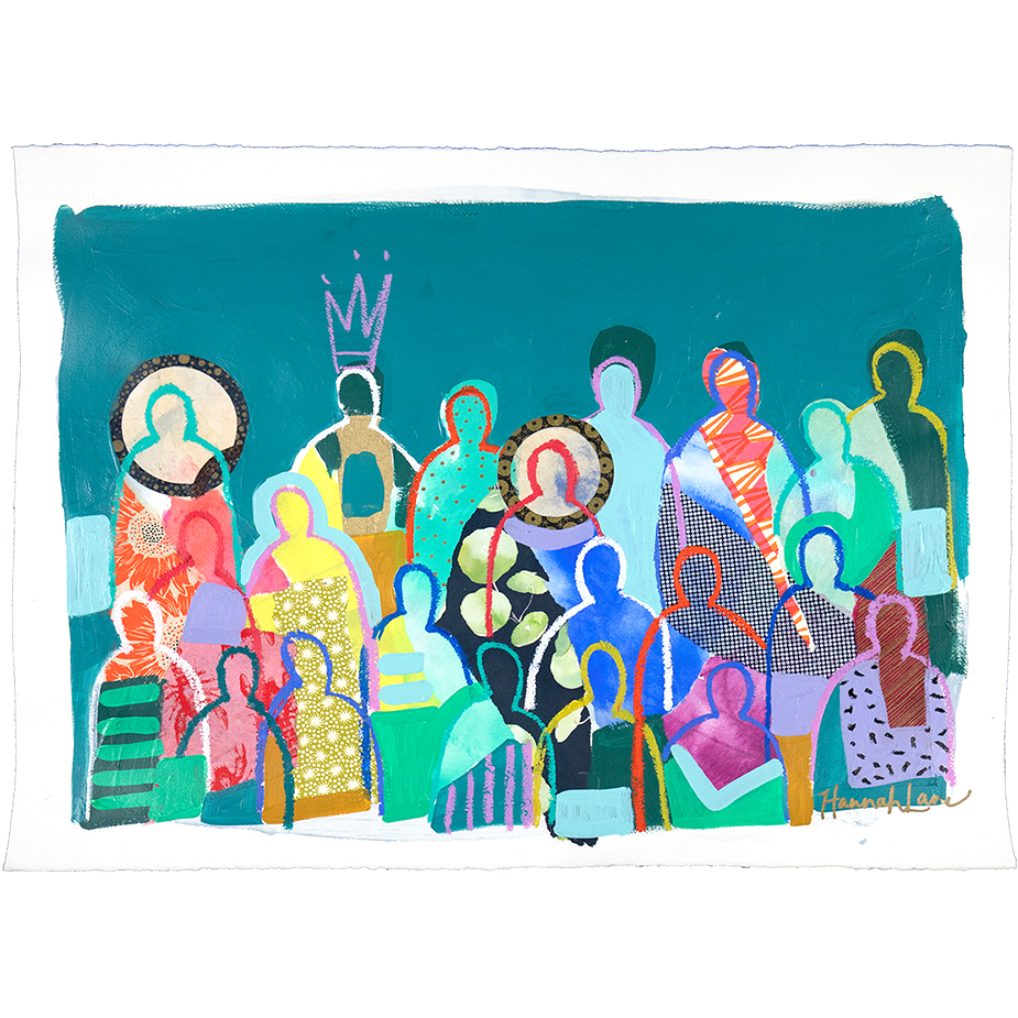 Hannah Lane is a contemporary mixed media artist celebrated for her bold use of color and dynamic, collage-like layering. A Louisiana native and graduate of the Savannah College of Art & Design, Hannah draws deep inspiration from the vibrant landscapes, diverse cultures, and heartfelt sense of family and community found in her southern roots. Her work blends pigmented Japanese papers, expressive line work, and rich washes of acrylic paint to create textured, energetic paintings. Each collection reflects her love for nature, storytelling, and community—an invitation to explore the beauty of her inner imagination. Hannah is represented by some of the top galleries in the Southeast, and her paintings are collected privately and in corporate spaces across the country. She also loves working one-on-one with collectors to create meaningful, custom pieces. After living and painting in Italy and New Orleans, Hannah now calls Nashville home, where she is part of a thriving art community. When she’s not painting in her home studio, you’ll find Hannah hiking with her boys, reading, or cooking up something seasonal and delicious! The crowd series is one of my most iconic collections, inspired by my big, beautiful Louisiana family and the joyful spirit of southern gatherings. I grew up surrounded by cousins, friends, and neighbors—many from families as large and lively as my own—where faith and family were at the heart of everything. Over the past 12 years, this series has evolved with new patterns, papers, and symbols that reflect the changing seasons of life. Each crowd painting is a kind of meditation, a reflection on the deep truth that we’re all connected. Rich with personal symbols and intuitive mark-making, these pieces push the boundaries of mixed media and invite you to see something familiar in a new way. Whether you're drawn to the vibrant energy, the quiet details, or the sense of belonging they evoke, each crowd carries its own unique aura—waiting for the right person to bring it home.