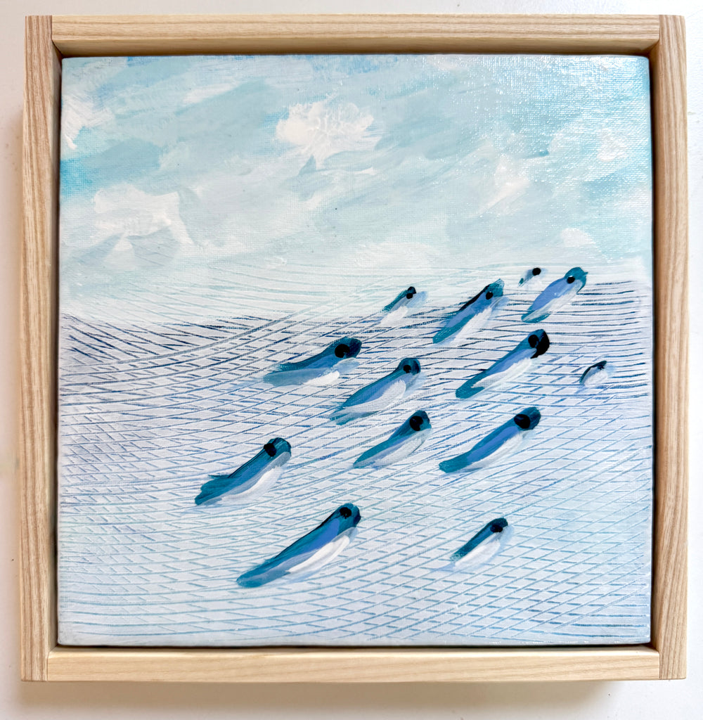 acrylic on canvas, in light wood frame