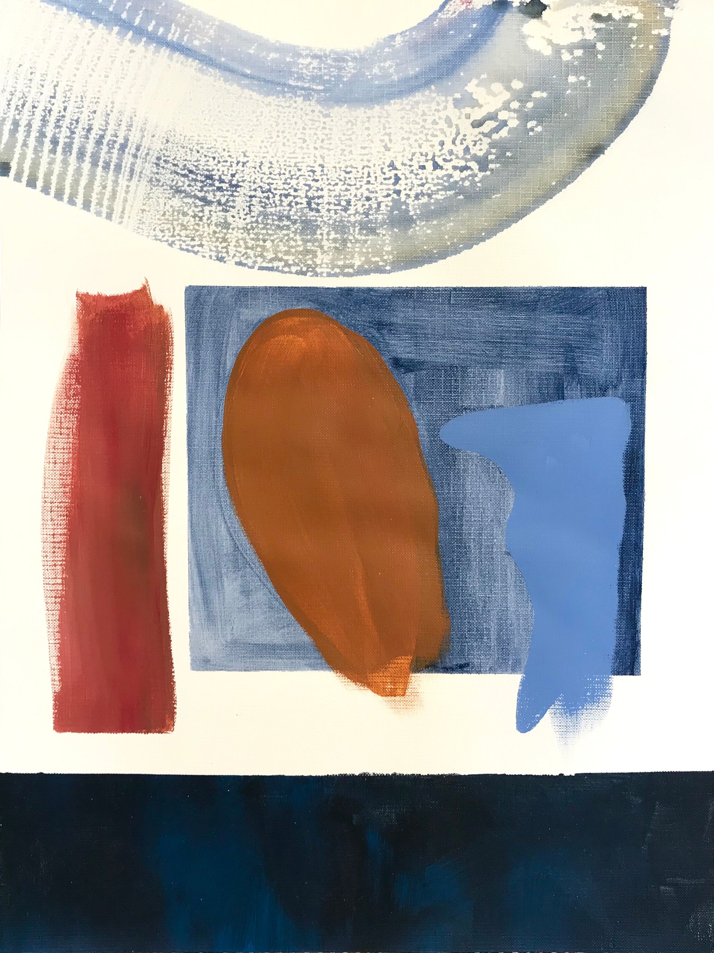 handmade paper collage and acrylic on cream colored paper