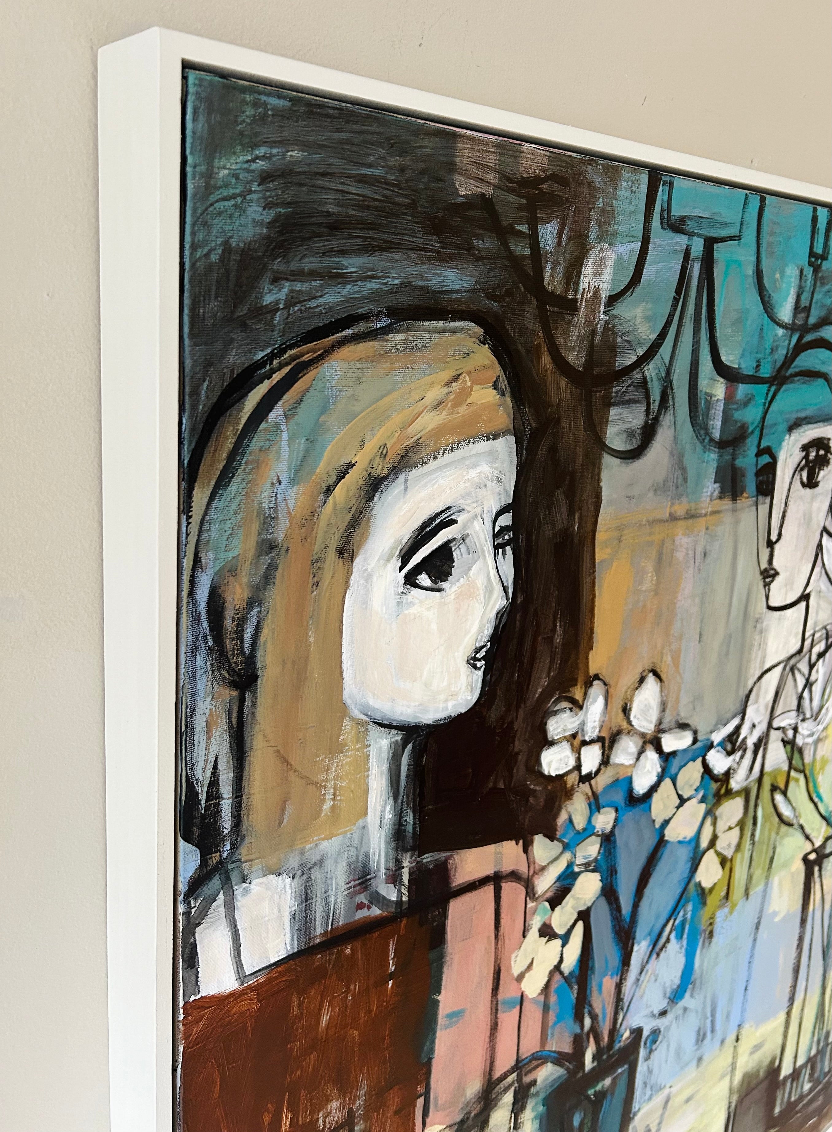 acrylic on gallery wrapped canvas, in white floater frame