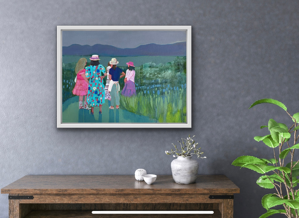 oil on canvas, in white floater frame