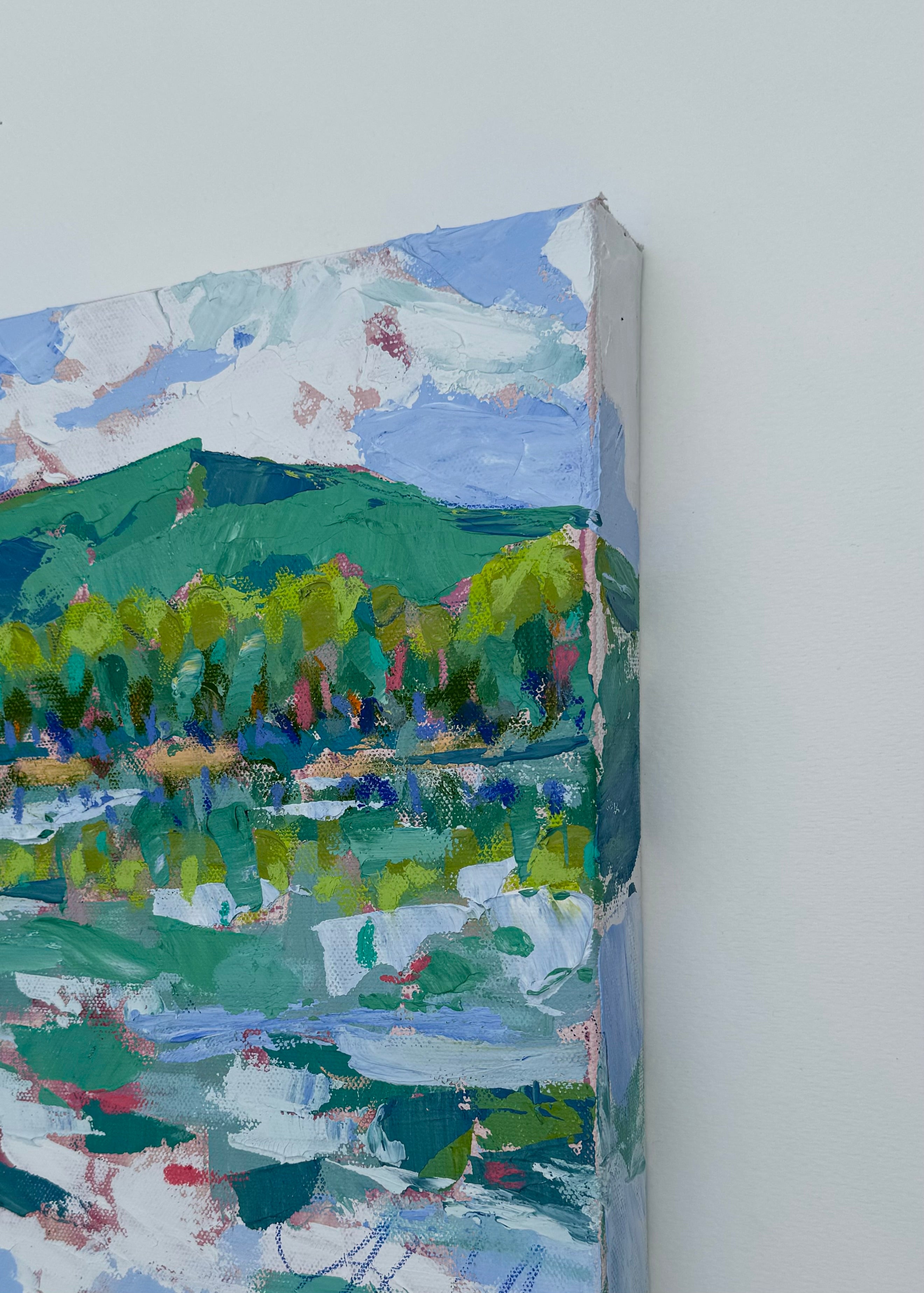 Lindsey’s paintings are an escape and journey - a time to relish the process of creativity: the brush strokes, the layers, the juxtaposition of colors. She works primarily with acrylic paints for their intensity of color and the ability to layer and create textures with various acrylic mediums and gels. A native of Lynchburg, Virginia, Lindsey’s landscapes generally focus on special places that she has known all her life, including fields at the foot of the Blue Ridge Mountains and the pristine beauty of the Cowpasture River. Working from onsite sketches and photographs, she mixes observations with her own personal memories and feelings of how she perceives a place. In addition to being an artist, Lindsey is a full-time art educator, wife, and mother of two young children.