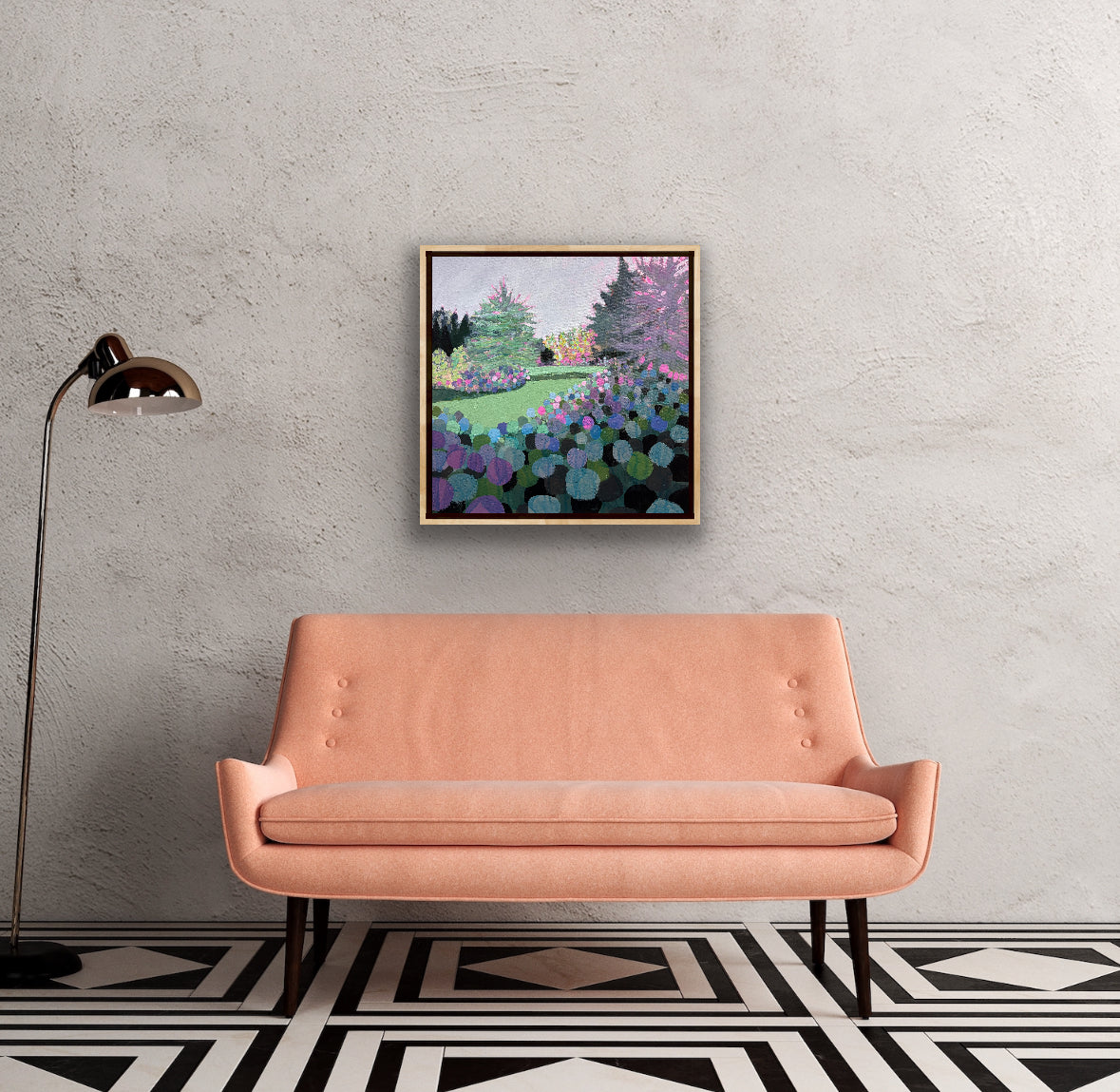 acrylic on gallery wrapped canvas, in gold leaf painted frame