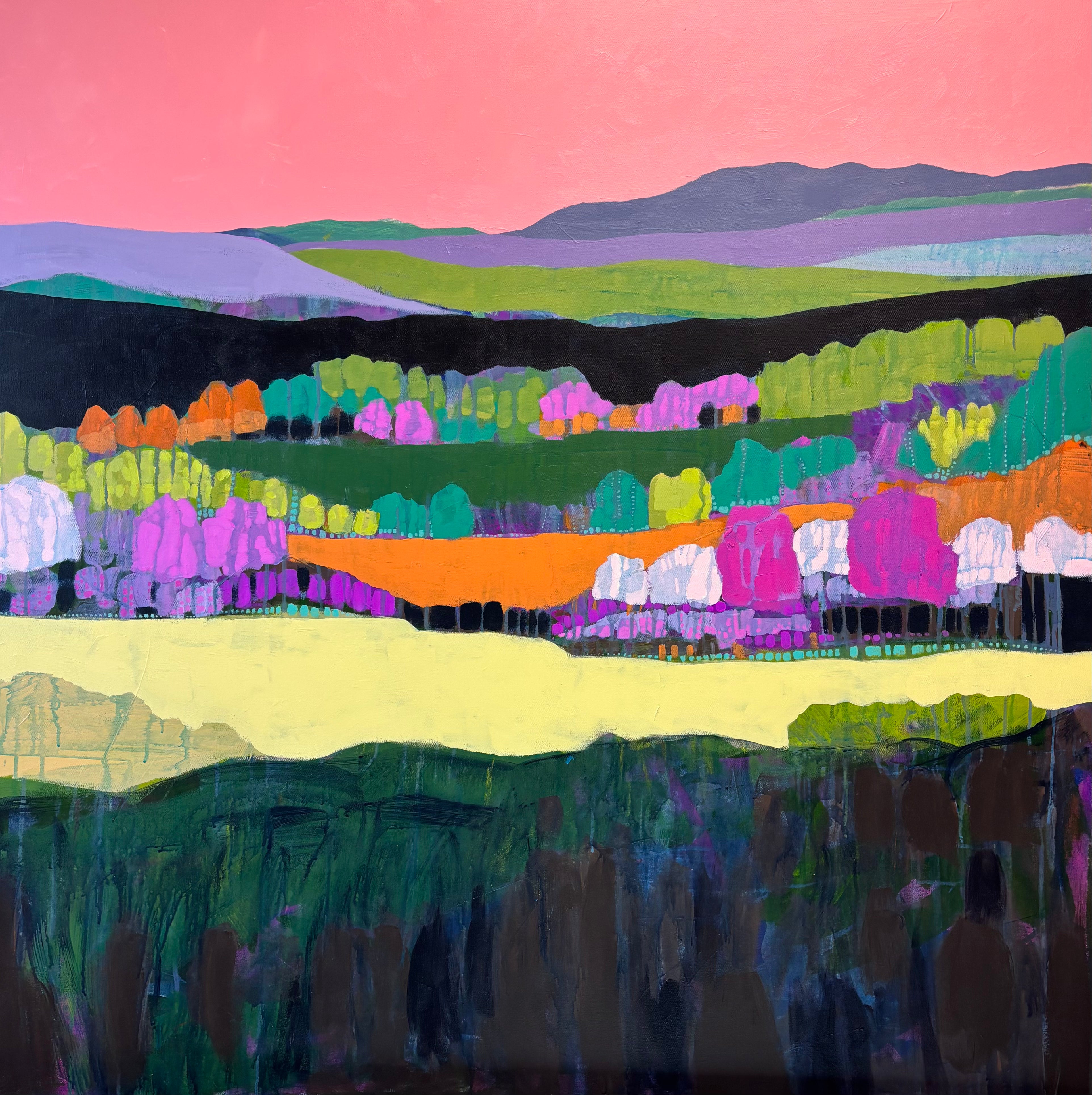 Suzanne absolutely loves color and patterns, and it shows in her work. She often uses an organic process of dripping and layering paint to achieve the effect she’s looking for. Her inspiration comes from the landscapes and people around her. She considers her work as an ongoing exploration, endeavoring to portray the natural and cultural world and those who live in it as strangely beautiful -- yet enormously fragile. Suzanne recently moved back to Virginia from Champaign, Illinois where she met her husband and raised her two wonderful children. Her academic degrees include a landscape architecture degree with an art minor from Virginia Tech and a masters of landscape architecture from University of Illinois. She’s always loved to draw and paint, and when she decided to drop organic chemistry for drawing, and forestry for landscape architecture she knew the creative path was calling her home! She’s painted much of her life, and began exhibiting professionally in the Midwest over the past fifteen years. Now she looks forward to making connections on the East Coast. She happily lives outside of Charlottesville with her husband, her dog and cat, and her mom.