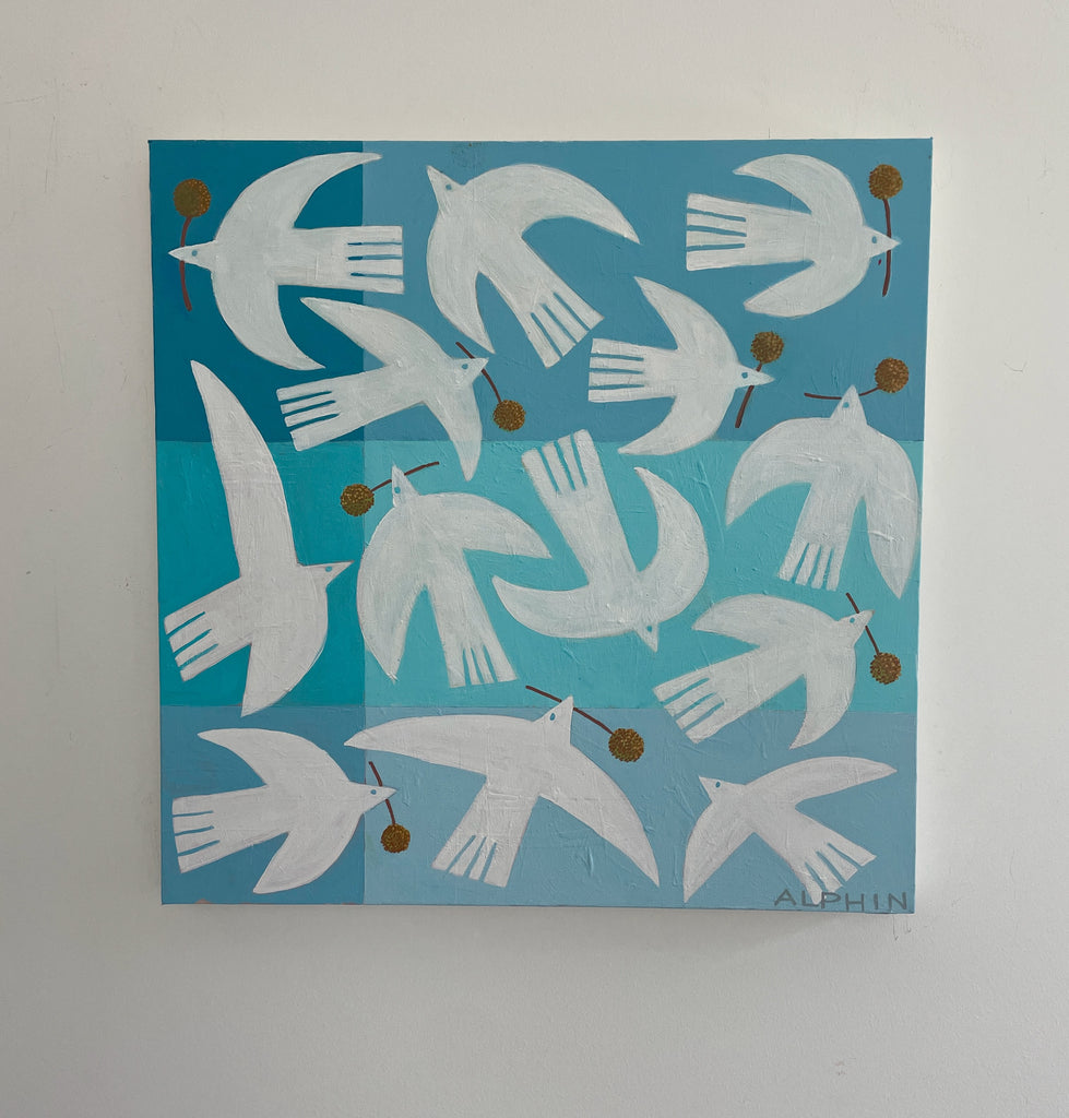 Debby Alphin grew up in Charlotte and graduated from the University of North Carolina at Chapel Hill, working first in advertising and later in software design. In 2003 after raising a family, she decided to pursue a second degree in architecture and began taking drawing and painting classes in order to create an entrance portfolio. The art won out and she began painting full time. She works in both oils and acrylics and describes her abstracts as a way to create order out of chaos. She has been fortunate to study with Elizabeth Ross, Andy Braitman, Nancy Franke, Jeanette LeGrue, David Shevlino, Gary Weiss and Gary Bodner. The California abstract artist, Nicholas Wilton, has been an incredible teacher and mentor. Artist Statement: “While architecture, geometry, symbols, and anything black and white have always inspired me, they are becoming much more apparent in my art. I like a certain amount of structure as I feel it grounds my work. From there I intuitively reference my own vocabulary of icons, both real and invented to create a narrative. I gravitate to straight lines, graphic shapes, lost edges and unique mark making to create a visual story which in the end I hope is as entertaining and appealing to the viewer as it is me, the artist. The joy is in the process.”