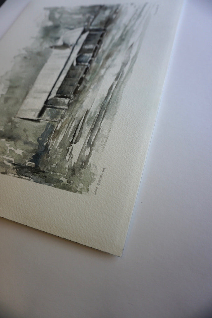 In architecture school we were trained for five years to present our designs as carefully drafted and water-colored washes in the Ecole des beaux arts tradition. In contrast we also learned freehand plein air watercolor sketching. The tension between these two sensibilities – tight versus loose; controlled versus free; slow versus fast – interests me and I hope that my paintings benefit from this tension. I continue to practice architecture and paint whenever I can. Inspiration comes from visiting unfamiliar places and revisiting familiar places with new eyes.