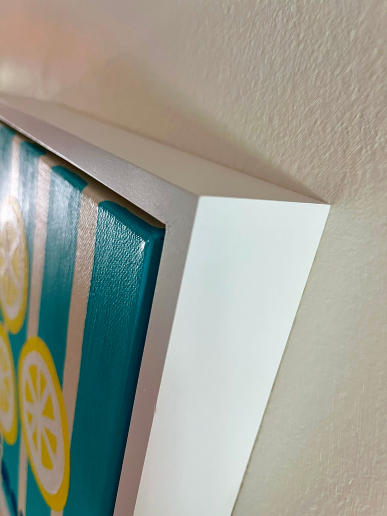 acrylic on gallery wrapped canvas, in white wood floater frame