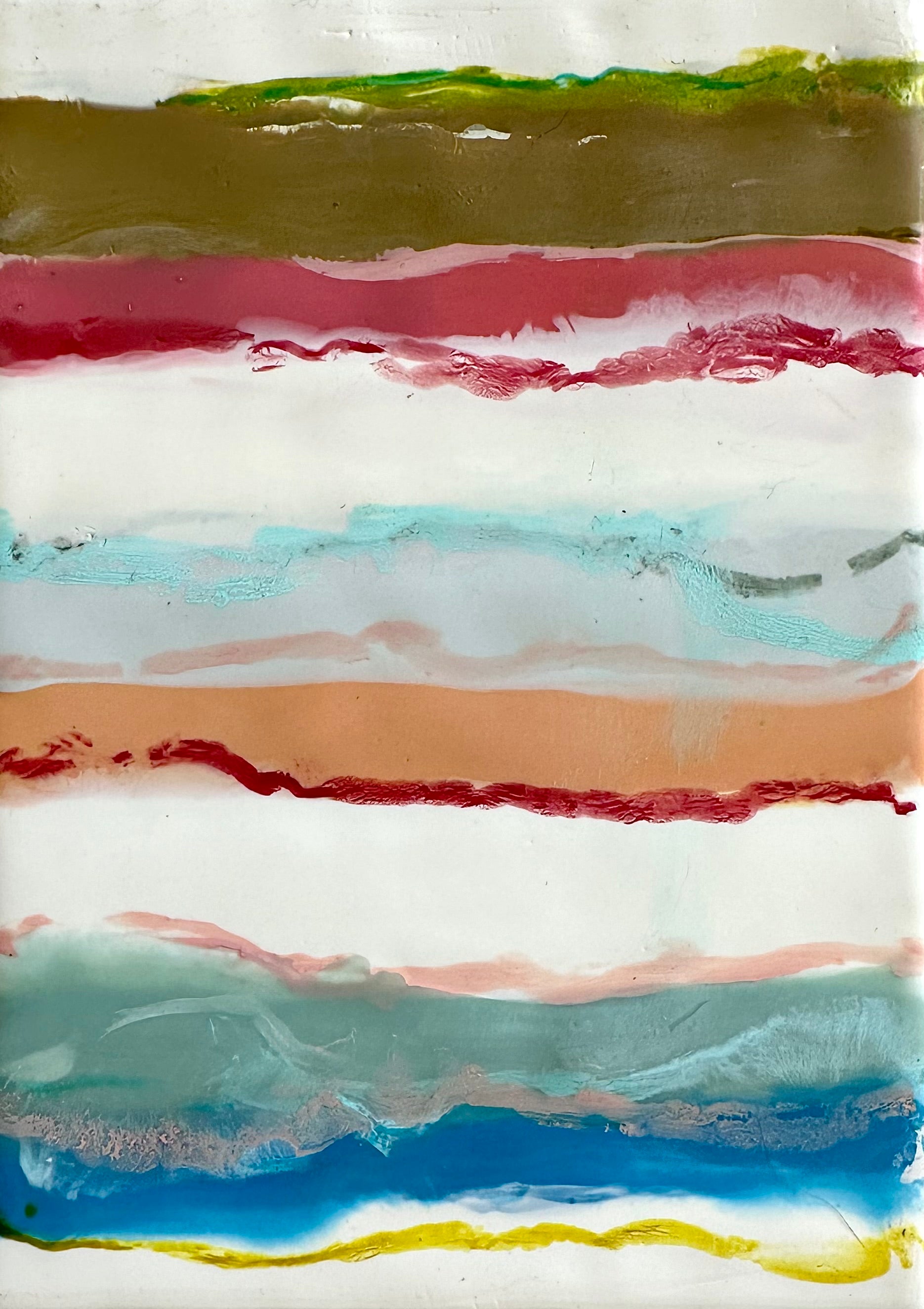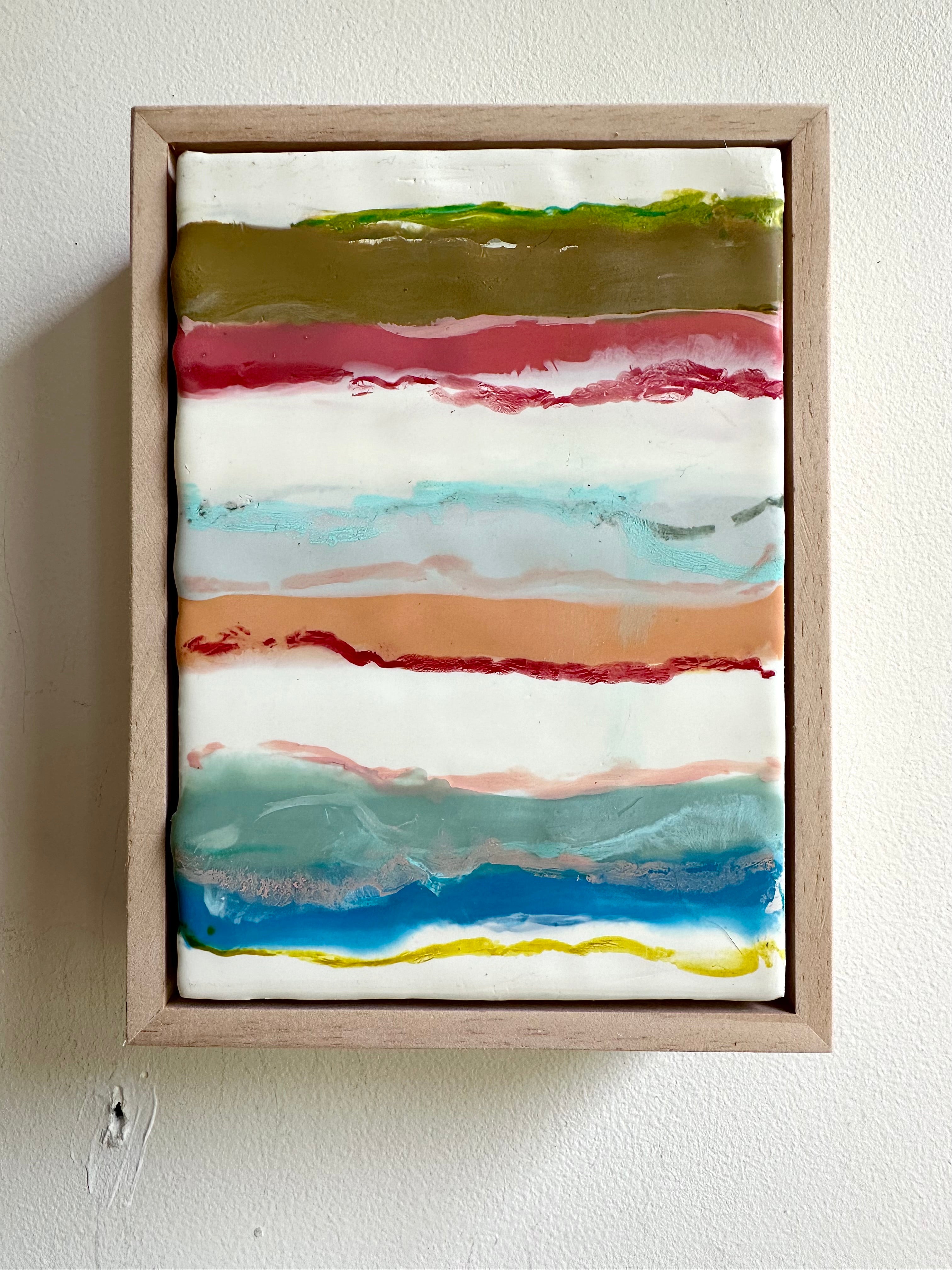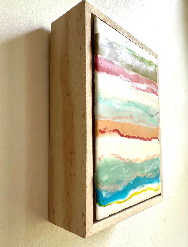 encaustic on wood, in neutral wood floating frame