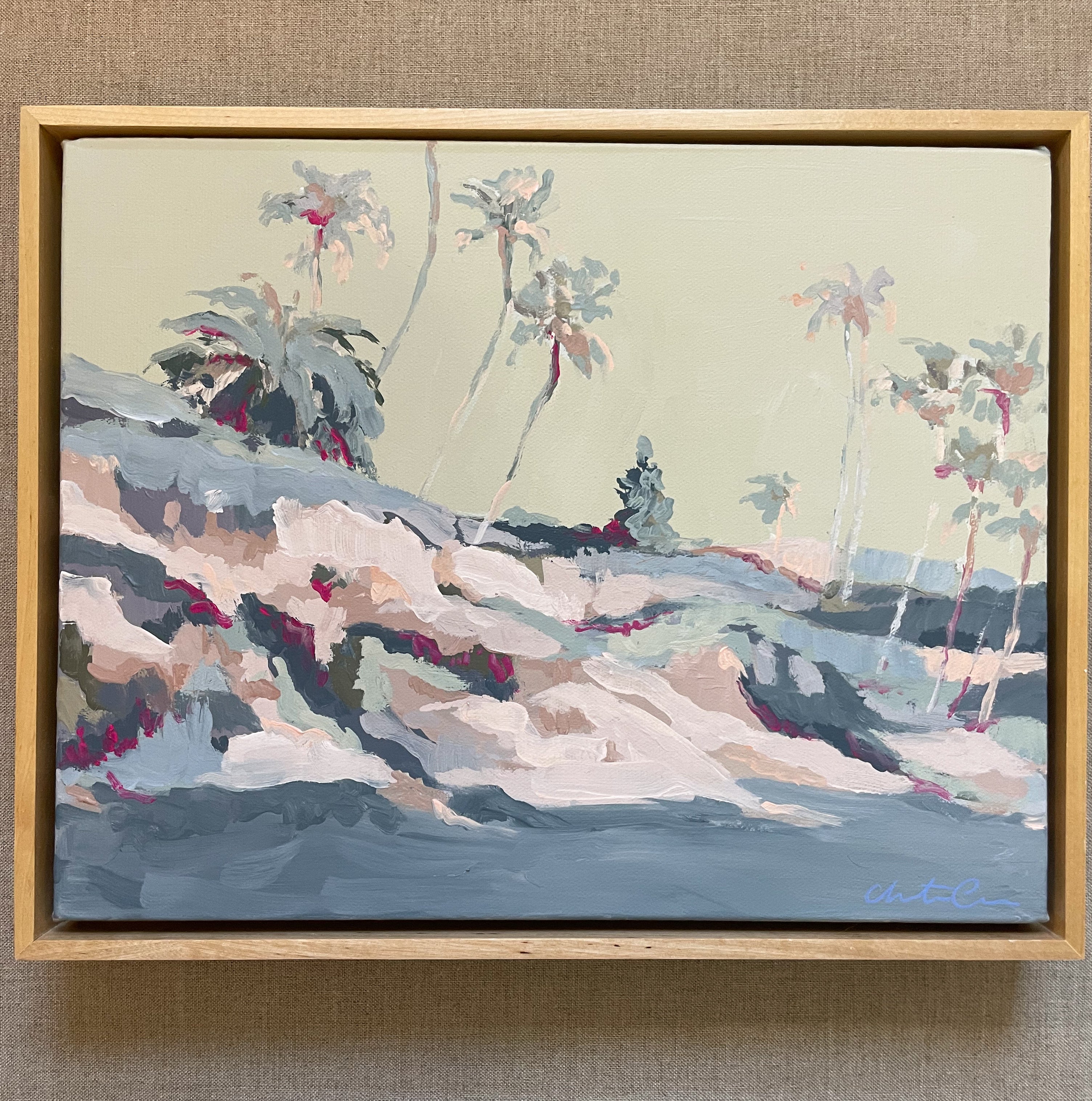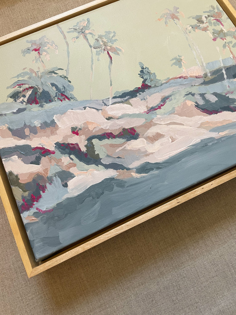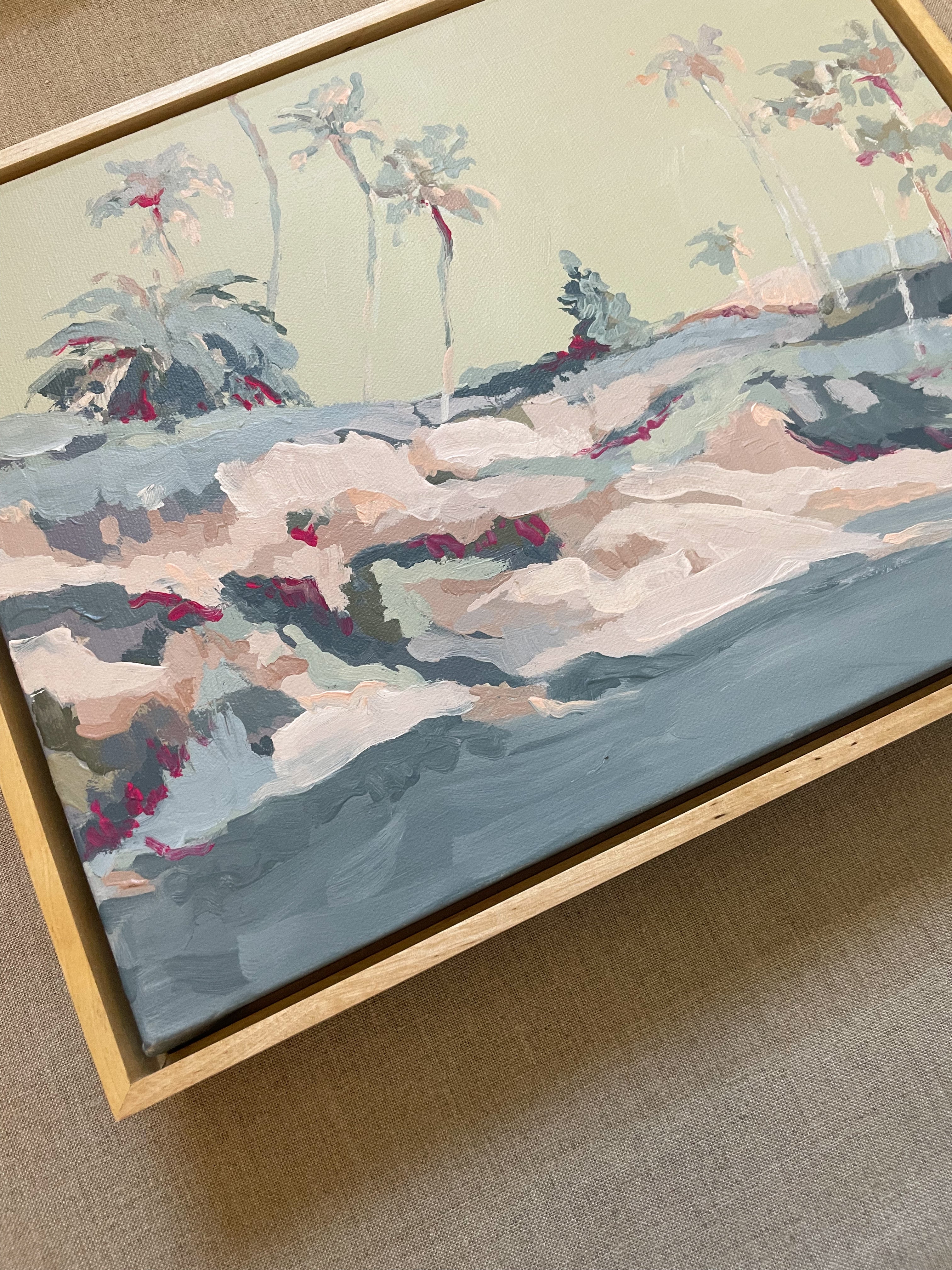 acrylic on canvas, in light wood floater frame