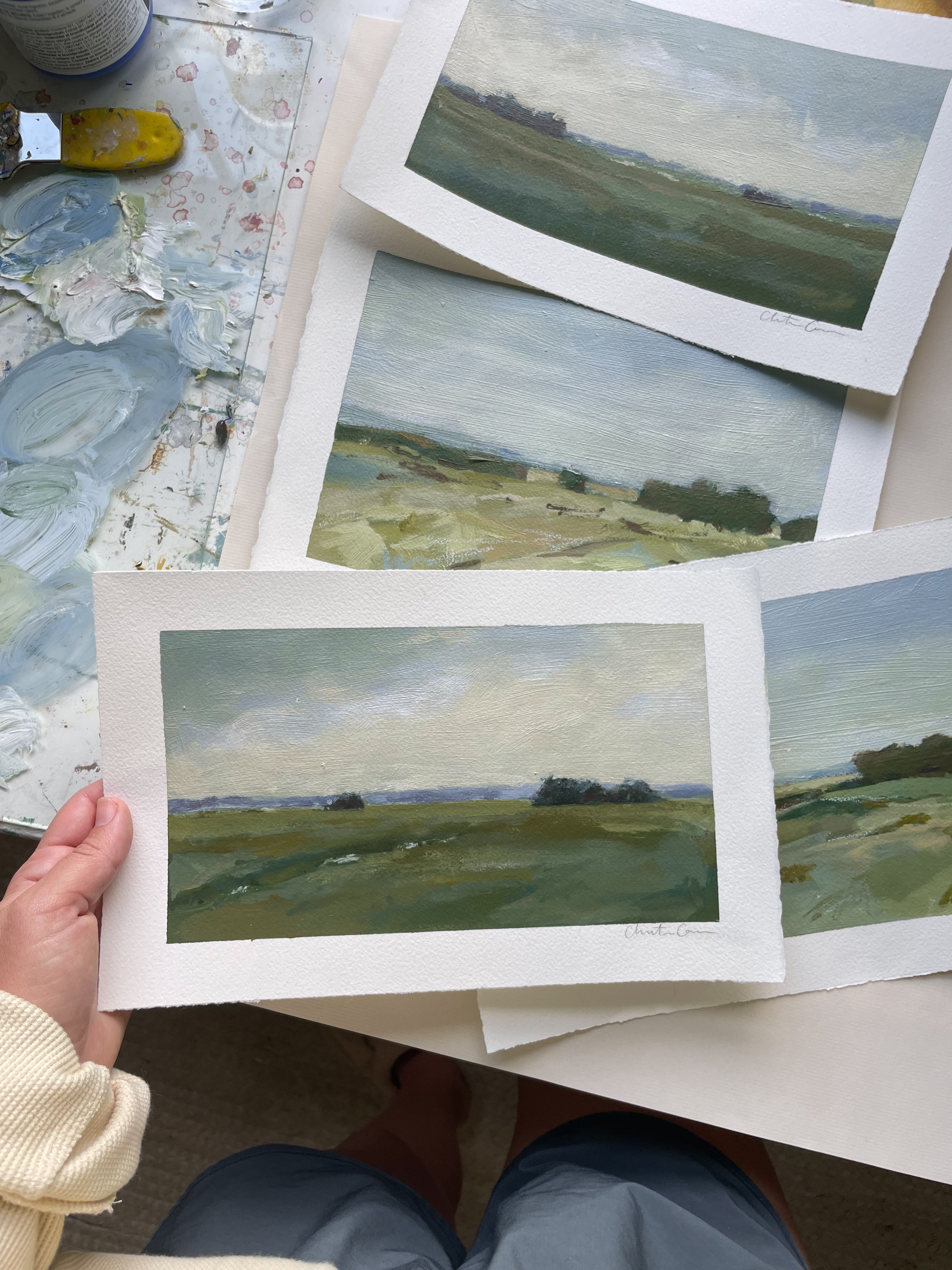 Christine hopes to create artwork that strikes the balance of fun and timeless, in an effortless manner. Composition and color harmony are a distinctive part of her work. Her palettes and subject matter are heavily influenced by her upbringing along the east coast of Florida. She hopes to bring everyday scenes to life through a new perspective and unexpected moments of color. Christine paints entirely from the three primaries (red, yellow + blue) and white. This has helped her gain a strong understanding of color theory.