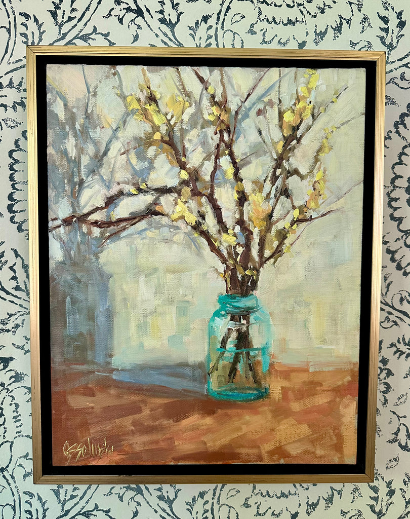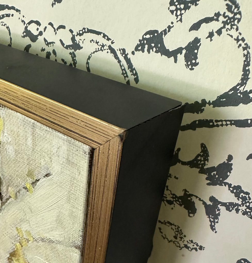 oil on linen board, framed in gold floater frame
