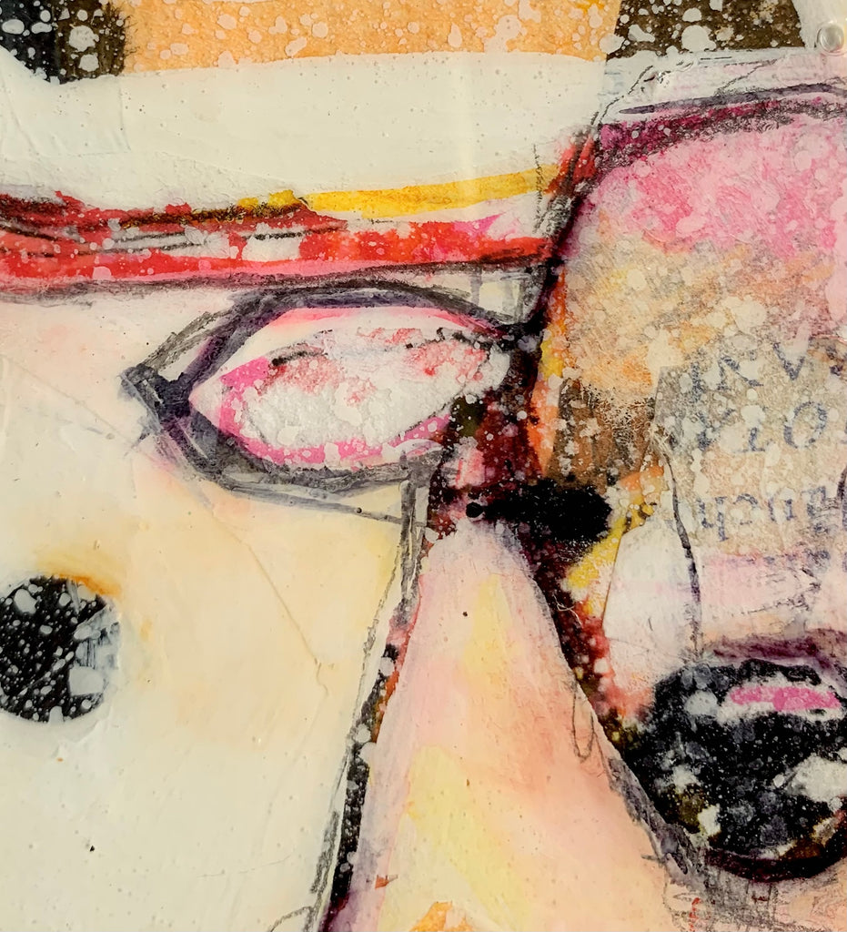 mixed media on cradled wood panel with resin
