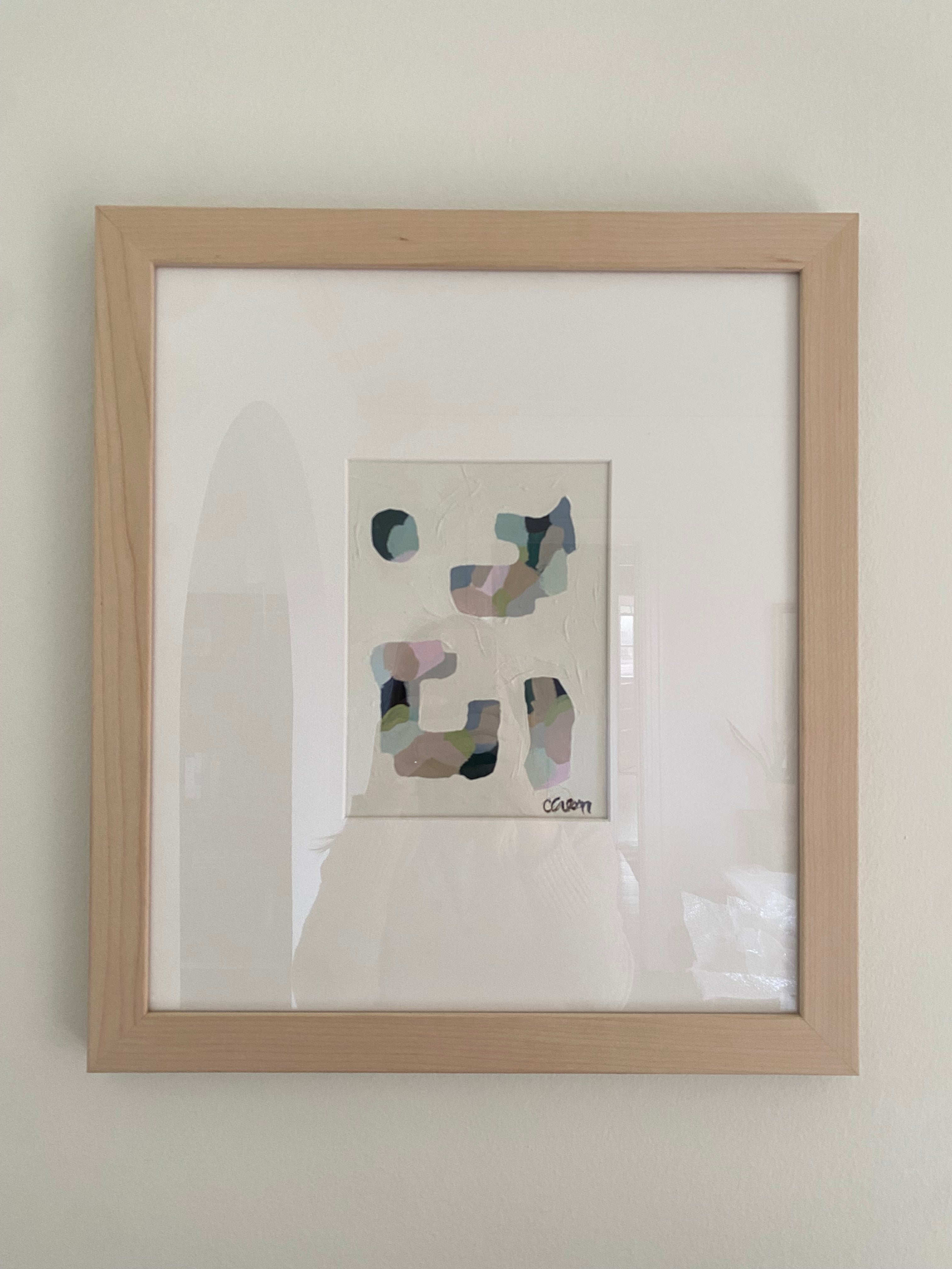 acrylic on wood panel, in white mat and natural wood frame