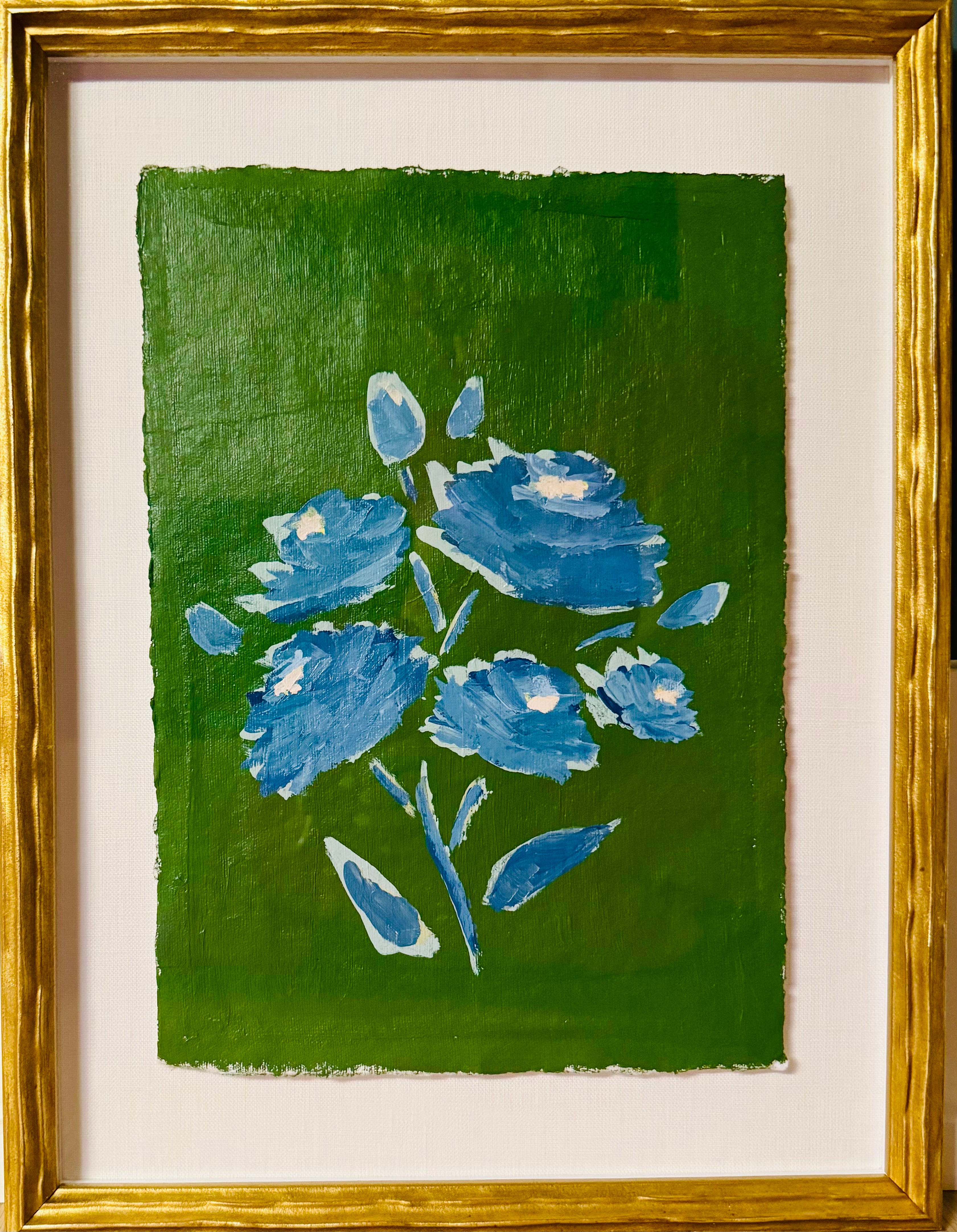 acrylic on deckled edge paper, framed in gold frame