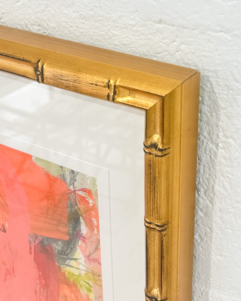 mixed media on Arches paper, float mounted in gold leaf faux bamboo frame