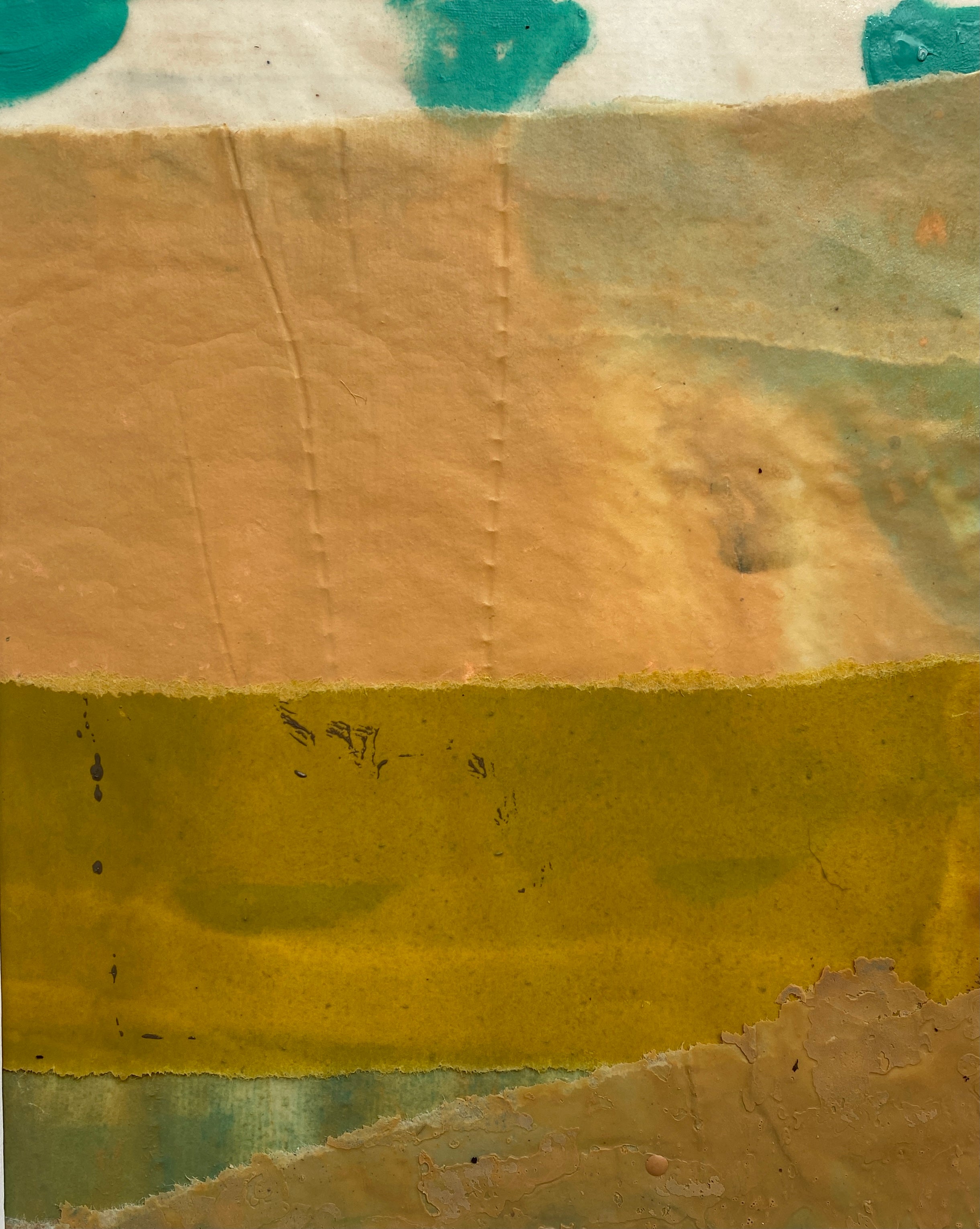 Margaret Meredith is an abstract painter working in acrylic and mixed media. Her work explores emotional atmosphere through layered surfaces, intuitive mark‑making, and a palette that balances moody, muted tones with moments of vivid color. Her recent work builds on botanical themes first explored in 2023, suggesting organic growth and memory rather than literal representation. Alongside this, Meredith has created minimalist, encaustic-medium, and collage‑based works that continue to inform her layered approach. Currently, she is focused on acrylic painting, embracing its fluidity and the freedom to work with water. Pencil marks, printed elements, stencils, and hand‑made tools play an ongoing role in her process, reflecting her love of printmaking and experimental mark‑making. Margaret Meredith lives and works in Columbus, Georgia, with her husband, a woodworker and mushroom farmer, and their two sons.