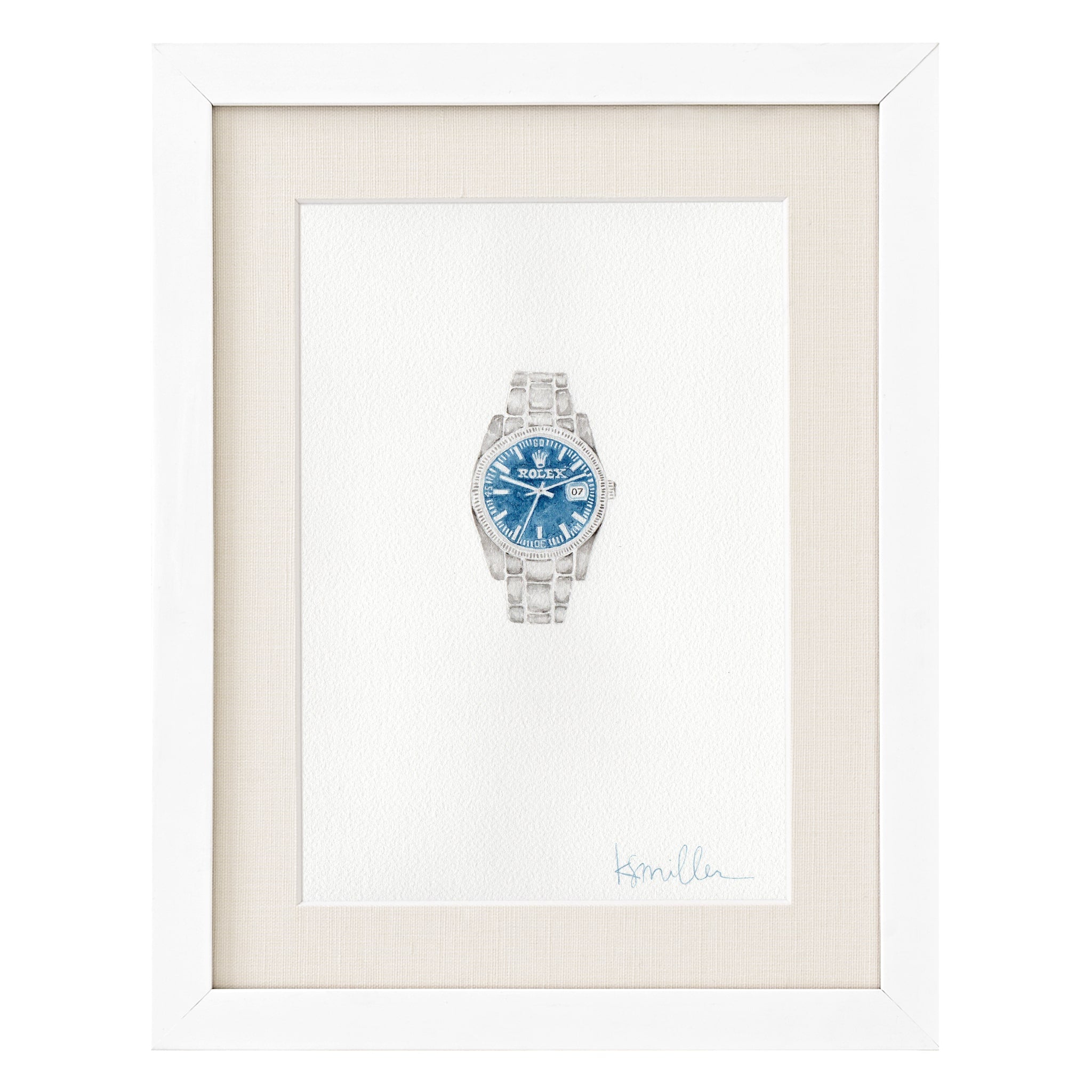 watercolor on paper, framed in white frame