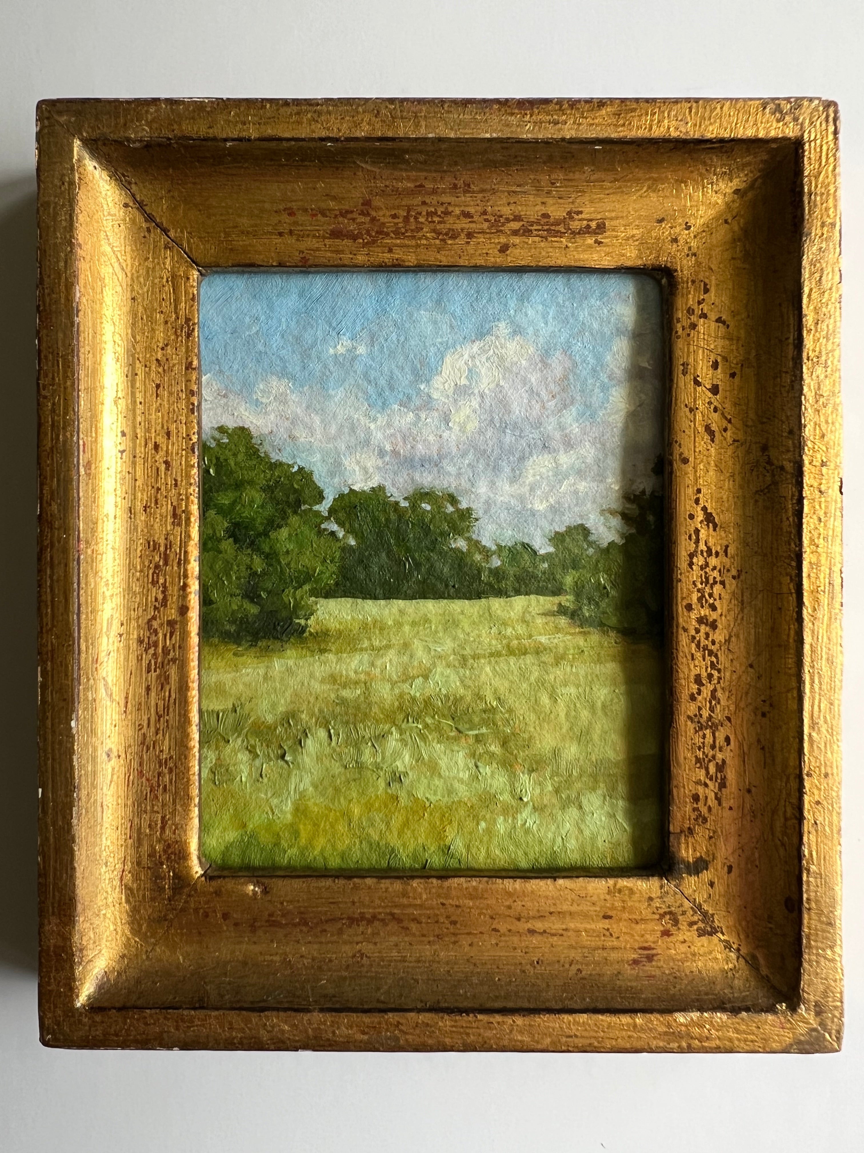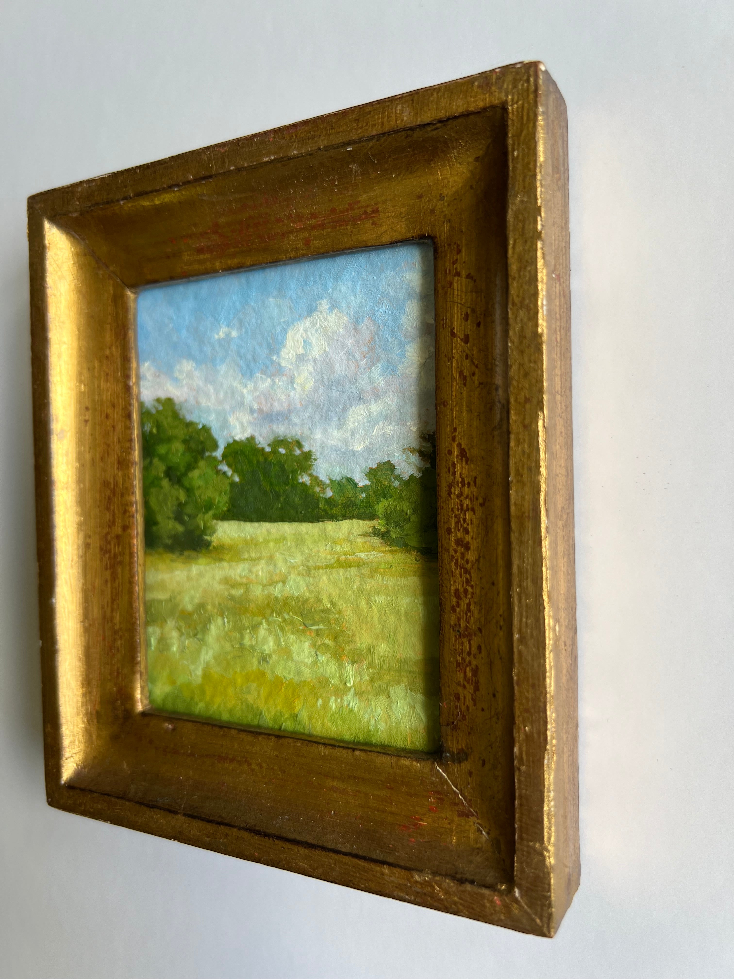 oil on handmade paper, framed in vintage gold frame