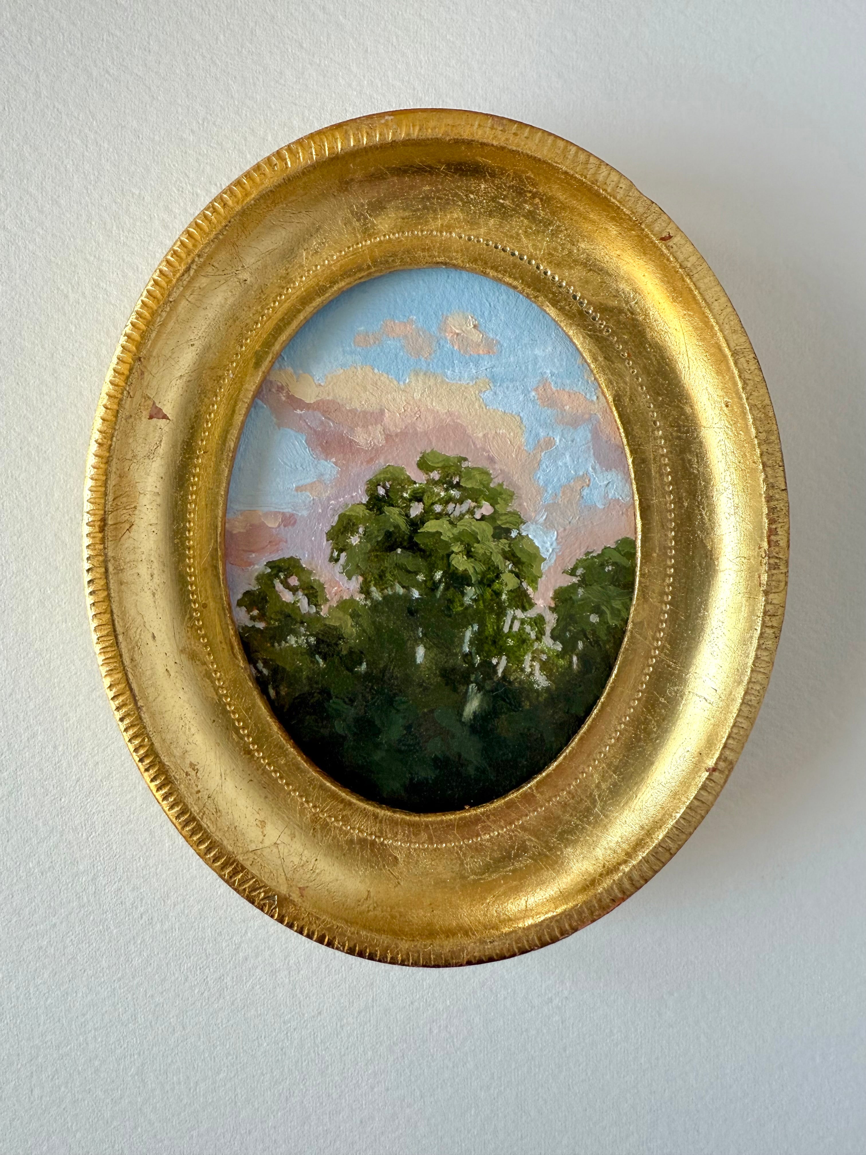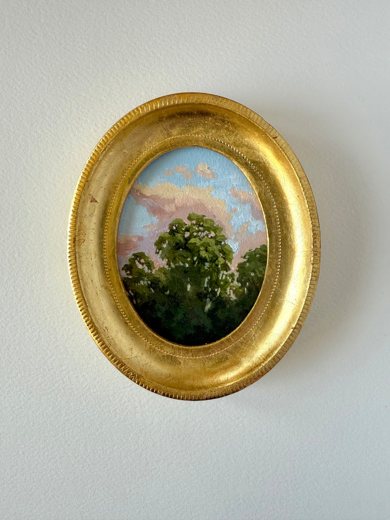 Jennifer was born in Jackson MS and moved to Nashville as a child. She enjoyed art as a child and painted with oils a bit as a teen, but ultimately went to MTSU to earn a degree in nutrition. Jennifer didn’t truly begin painting again until her children were in school full time, and started simply by painting pieces she wanted to hang in her own home. Discovering a love for vintage and antique frames (not to mention looking for these frames both in-person and online), she began pairing them with her favorite paintings. She paints primarily in acrylics on handmade paper. “I love the juxtaposition of a vintage/antique frame with the freshness of a modern landscape on textured handmade paper; the marriage of that tradition and history combined with the fresh clean colors in my pieces brings me joy.” She finds inspiration in clouds and trees and the hunt for the perfect vintage frame. Jennifer lives in Nashville with her husband and two boys.
