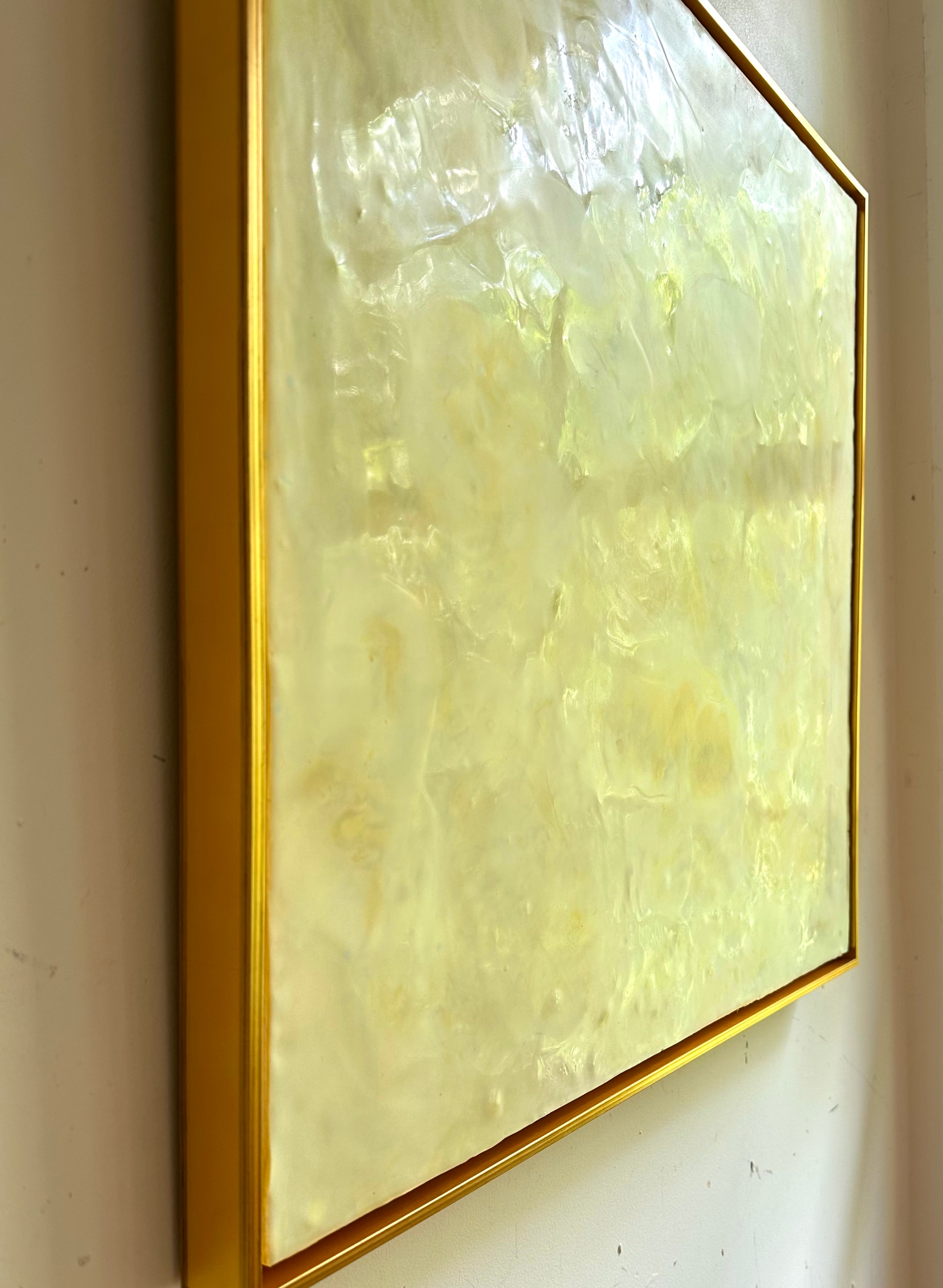 encaustic on wood, framed in gold frame