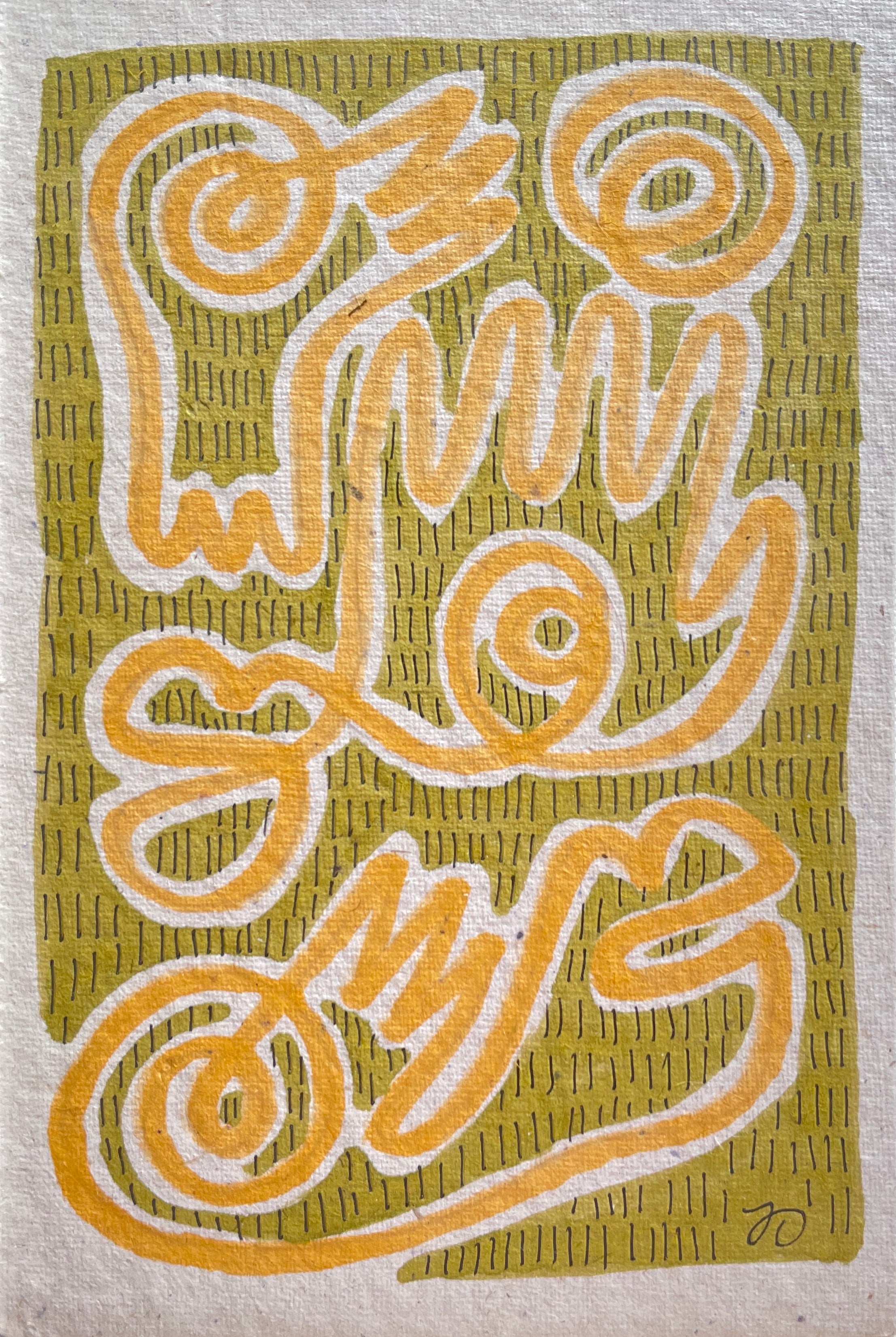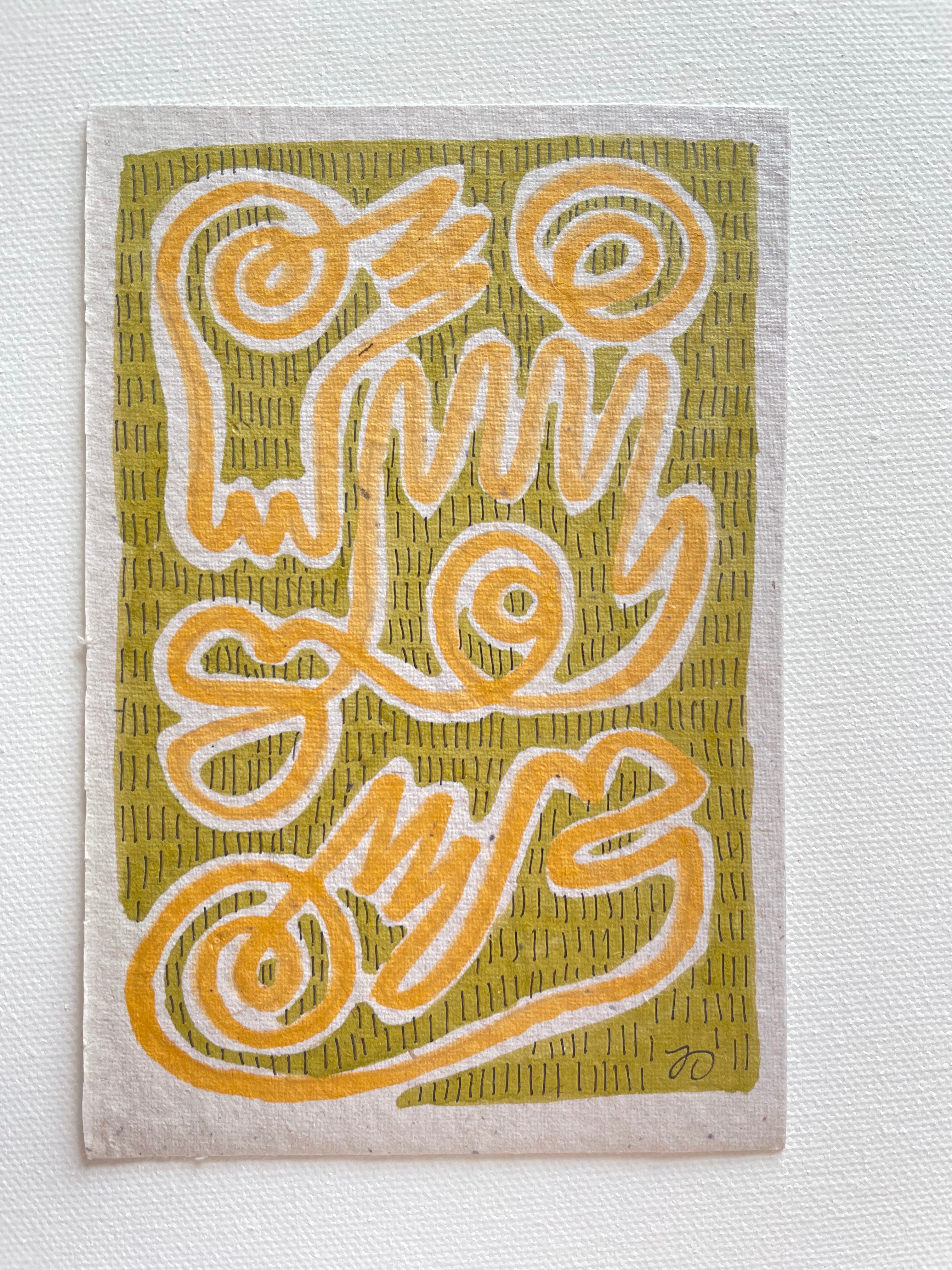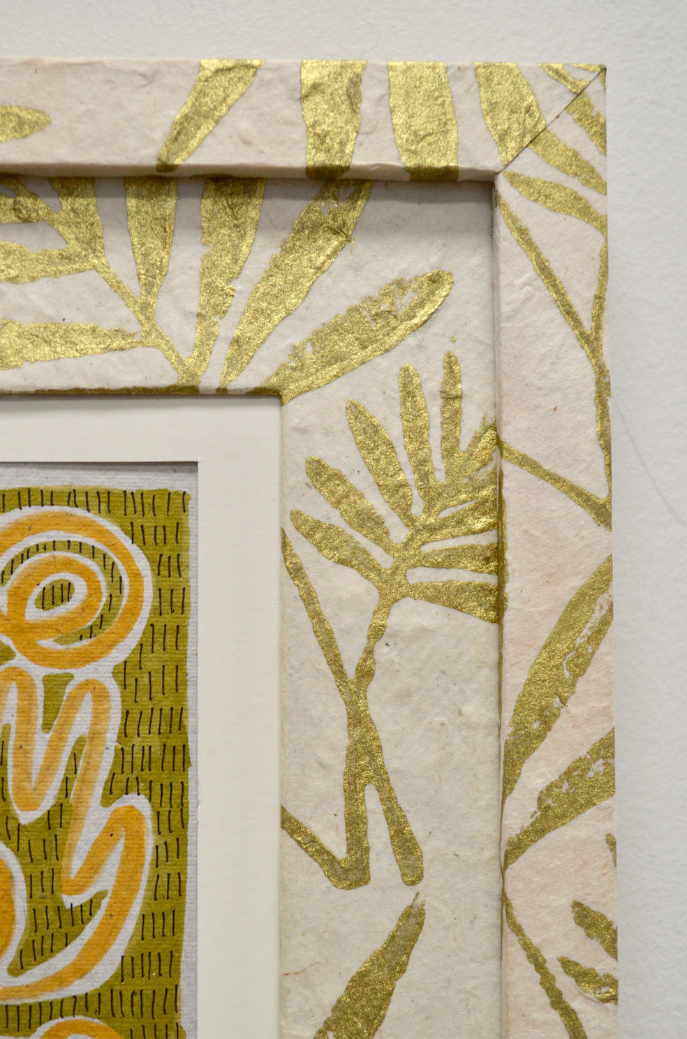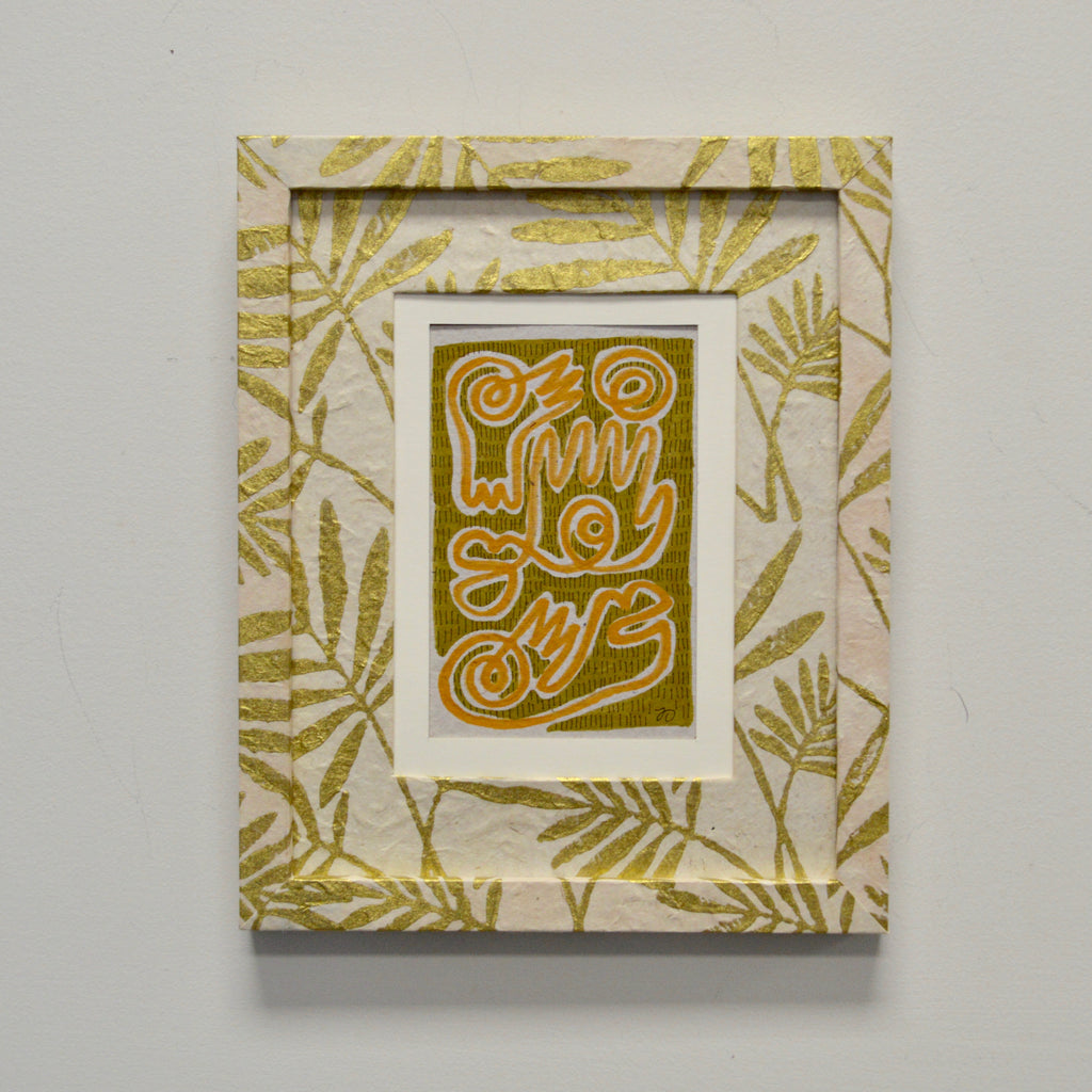 marker and micron pen on handmade paper framed in handmade frame