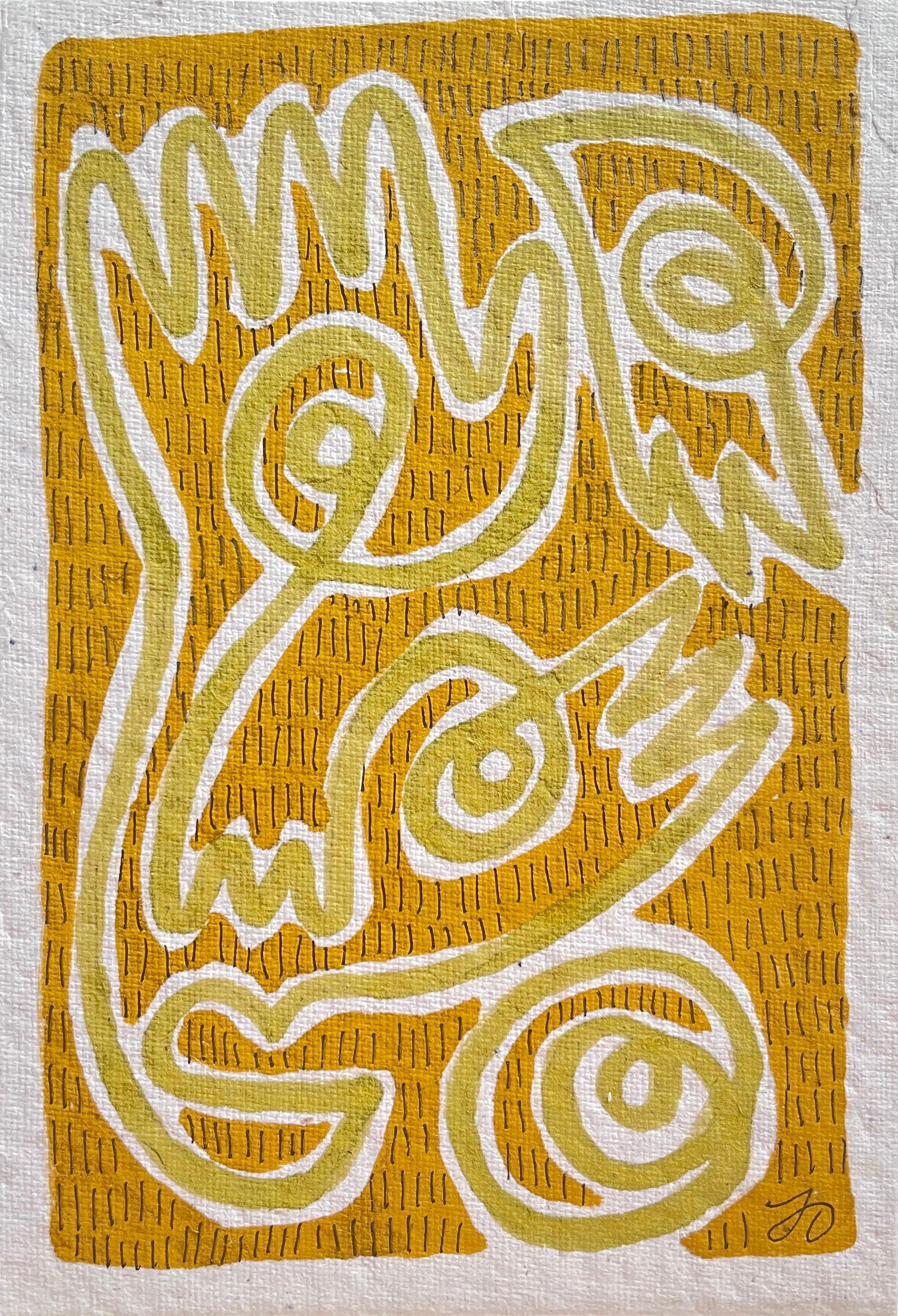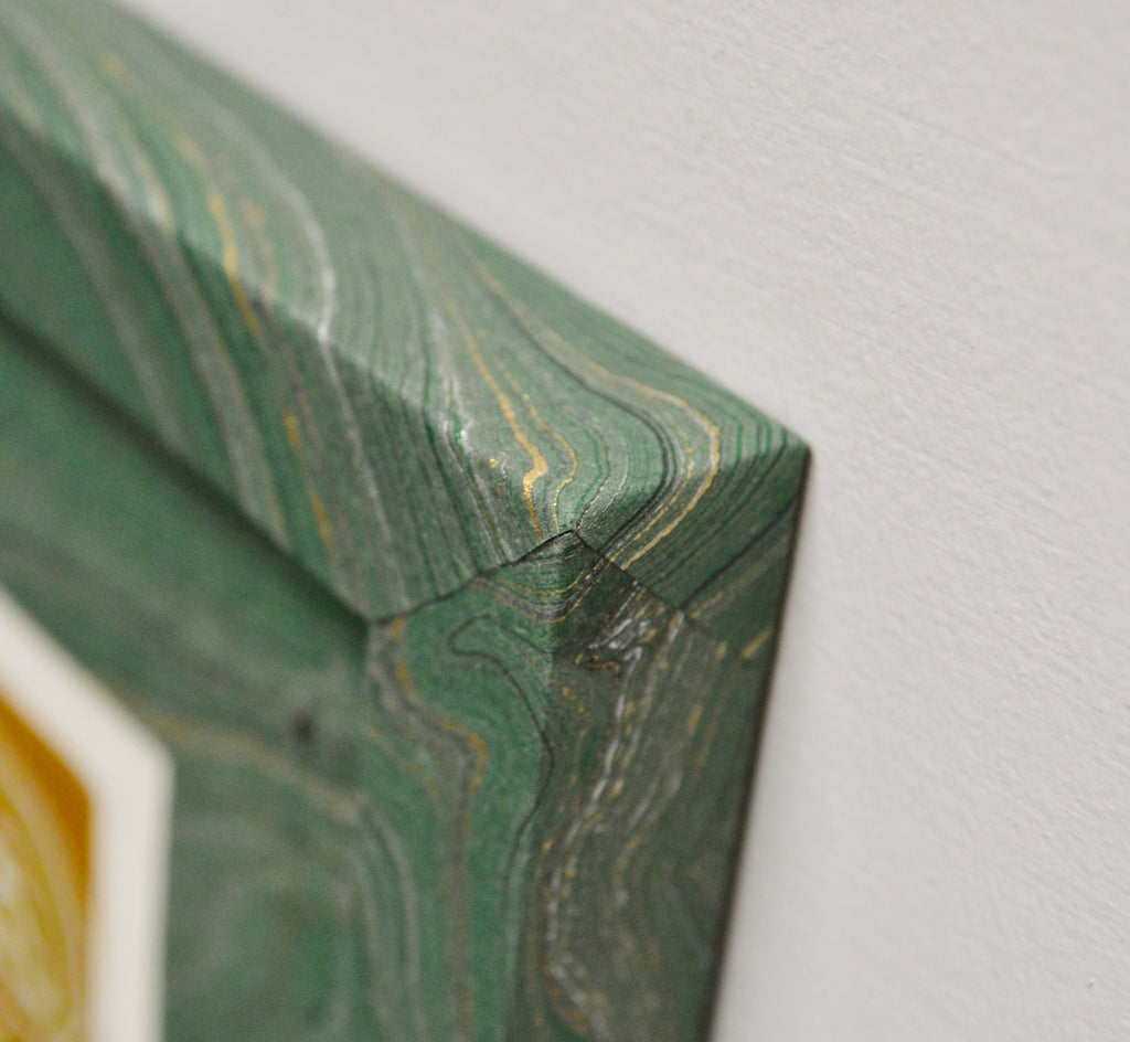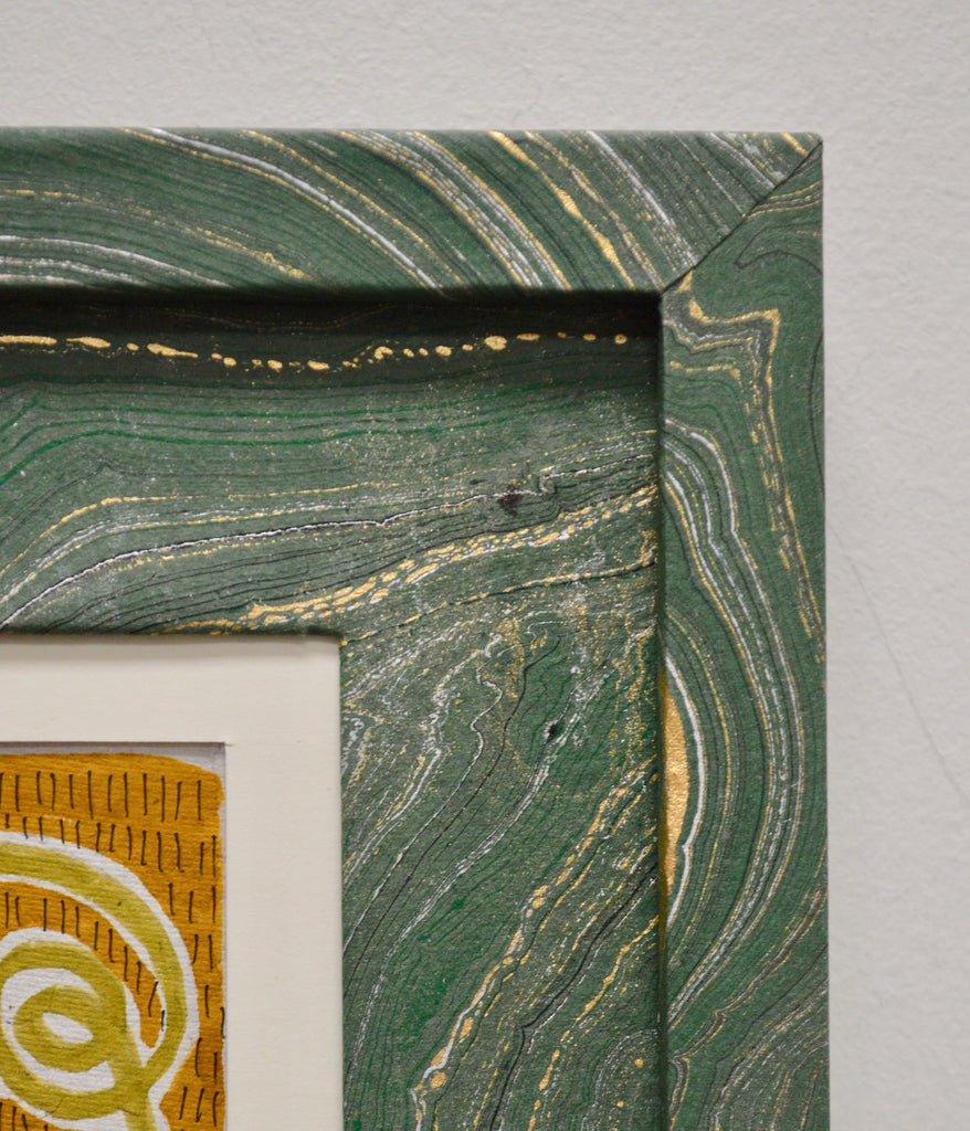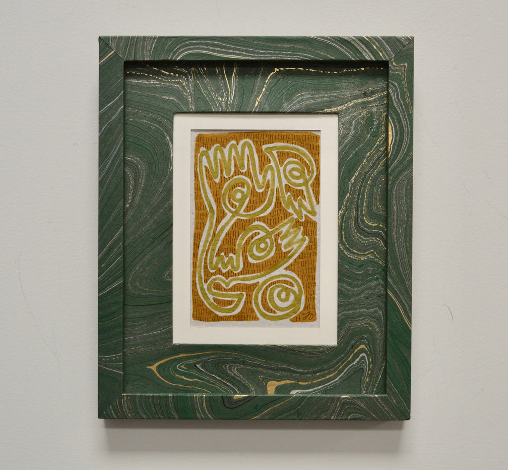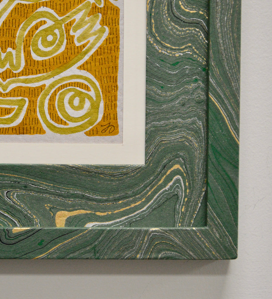 marker and micron pen on handmade paper framed in handmade frame