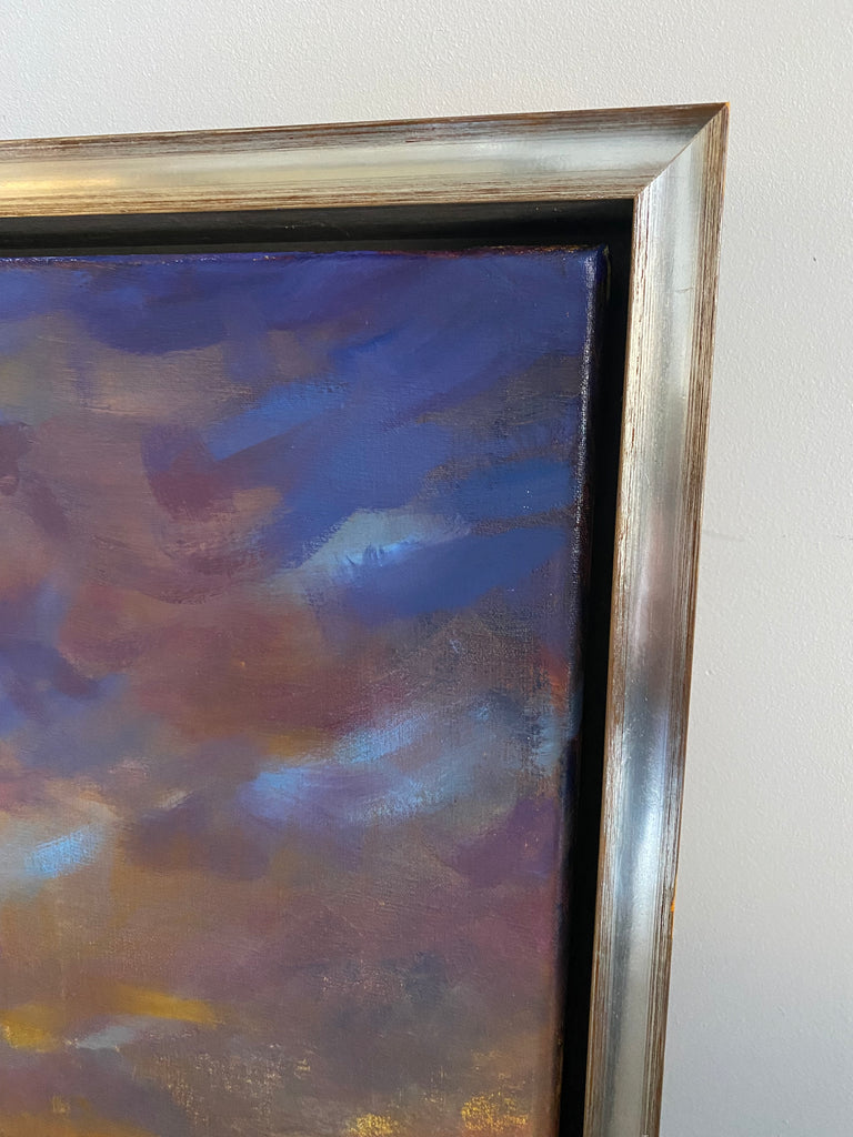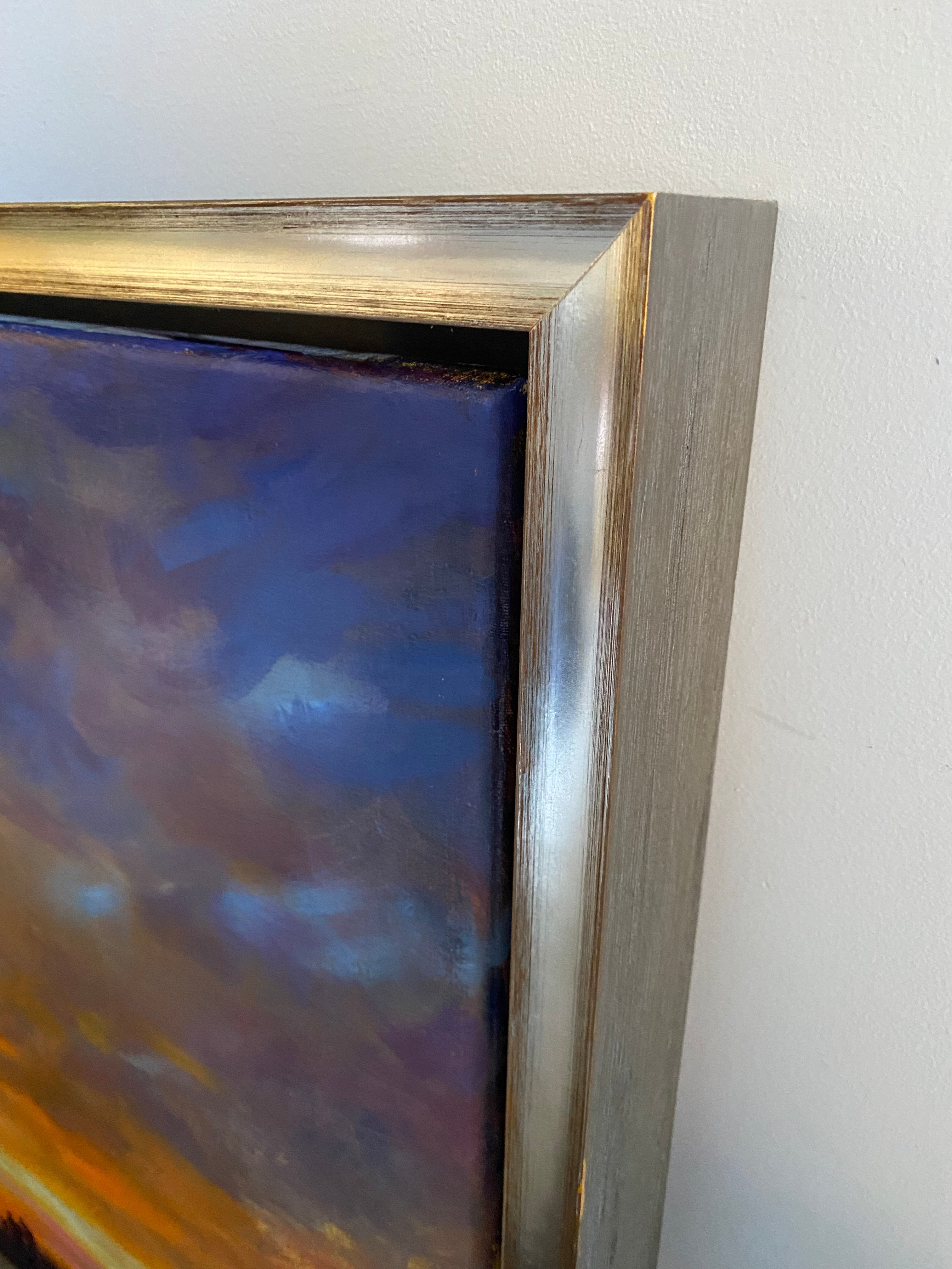 oil on Belgian linen canvas, in silver and wood floater frame
