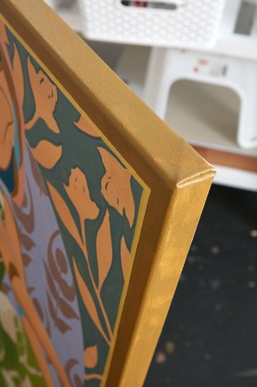 My name is Lizzy Love and I'm an artist in Nashville, TN. I create figurative works on canvas with acrylic paint and papers with watercolor and gouache. This body of work has been a rebirth for me creatively. While I've been painting full time for the last 5 years, I feel like I've really come into myself creatively with my figurative paintings. Born out of a time of uncertainty and lots of questioning, I was pushed to dig deep and get back to basics. I decided to switch gears from painting the landscapes, for which I had been primarily making for years. As an effort to get my creative spark back, I started sketching figures from magazines, a subject I hadn’t explored in a long time. Over many months they slowly evolved into what they have become; starting from detailed and realistic, to more abstract and modernist. I am a big believer that the environment of your home shapes your attitude, and for that reason I love interior design. That love is what led me to start incorporating furniture / interior surroundings / and patterns into the pieces. I pull apart and put back together the lines and shapes of many of my favorite interiors, and place them amongst the figures in a dynamic way. These ladies embody many things - community, respect, femininity, reverence. They are a way to draw attention to what being a woman entails. Many times it means being fierce and strong. Many times it means leaning on and drawing your strength from friends that are like family. While creating each piece, I draw upon the love and reverence I have for all the women in my life; the women who have shaped me, lifted me up when I needed it, laughed with me, and inspired me.